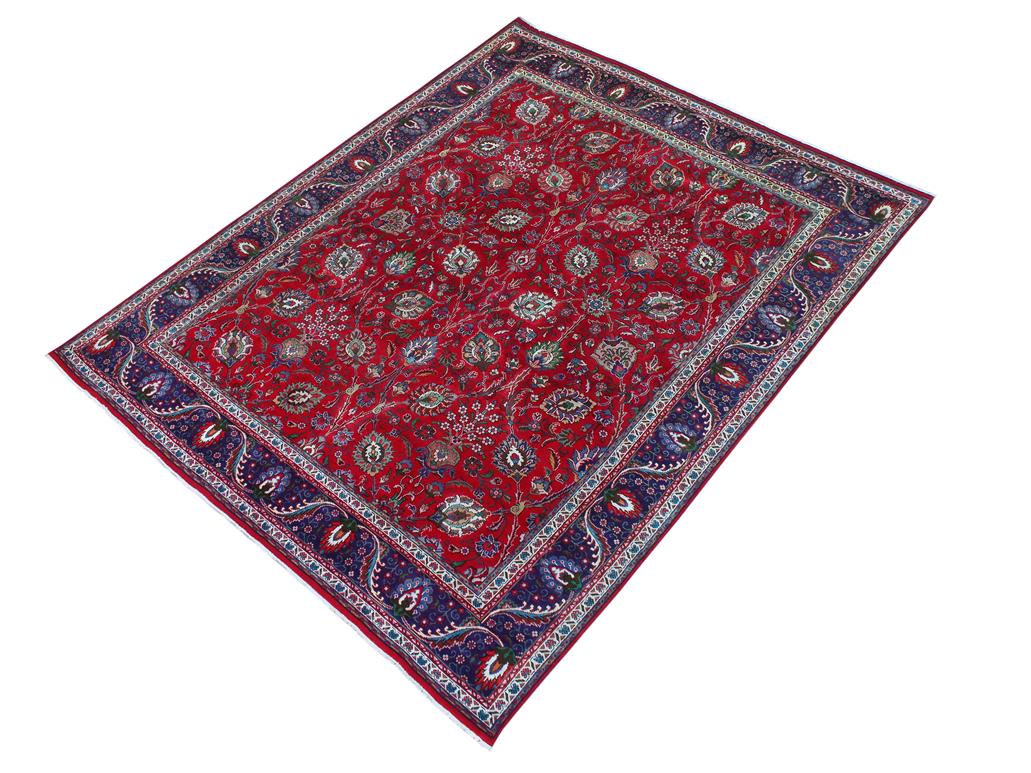 Create a new dimension of style in your space with this breath-taking antique hand knotted Persian rug. Made in Iran, this gorgeous hand-knotted rug features all vegetable dyes and 100% wool, adding luxurious texture and appearance. This gorgeous antique rug features an intricate design with a unique detailed border. Featuring an awe-inspiring color pallet and an intricate design handmade by skilled artisans is a great addition to any decor. Bring luxury and extravagance to your living space with this luxurious rug.