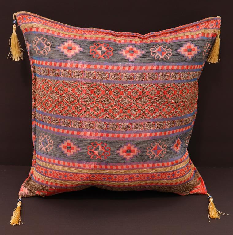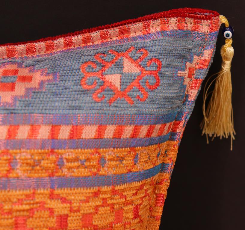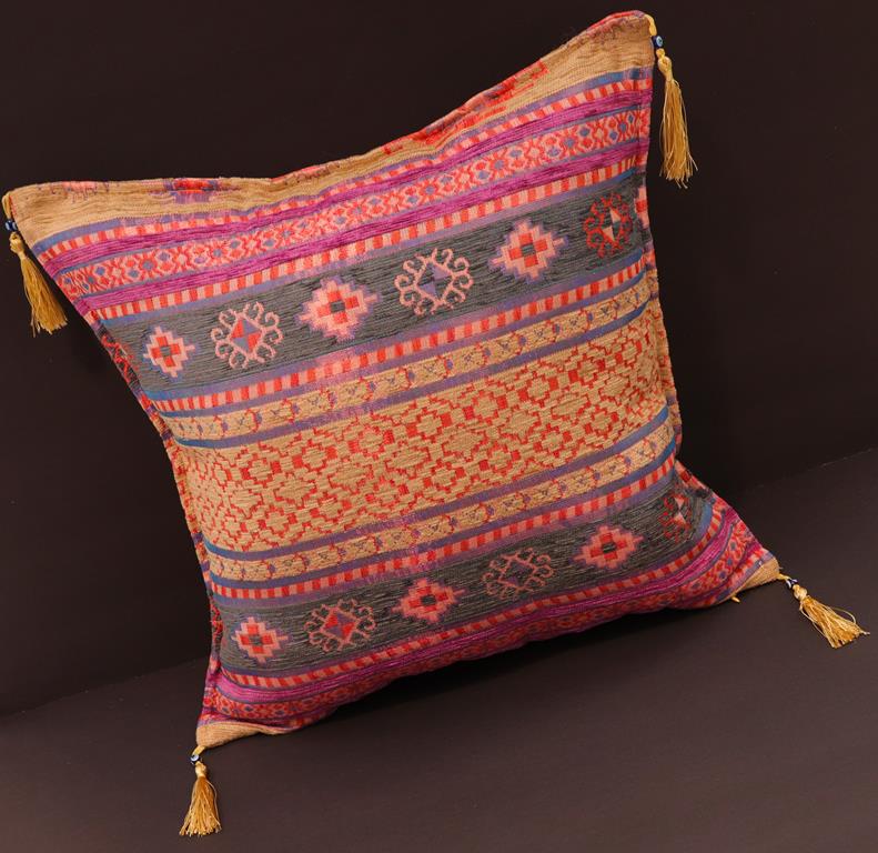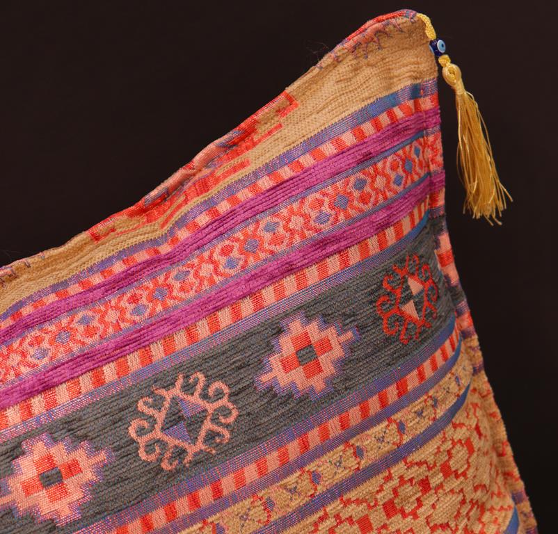 Embellish your home with this timeless casual chic Turkish decorative throw pillow. Handmade Jacquard woven on heavy Chenille fabric in a Turkish classic design inspired by an antique oriental tapestry, these exquisite pillows are a perfect addition to any decor. Made in a beautiful vibrant color pallet these beautiful pillows are double sided with a beautiful repetitive geometrical, naturalistic floral and traditional pattern. Masterfully artisan-crafted with a contemporary fashion palette producing bold intricate sharp patterns makes these decorative pillows a standout piece in any decor.