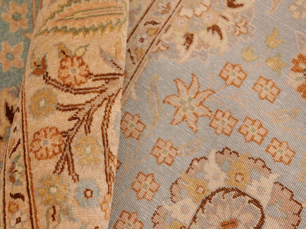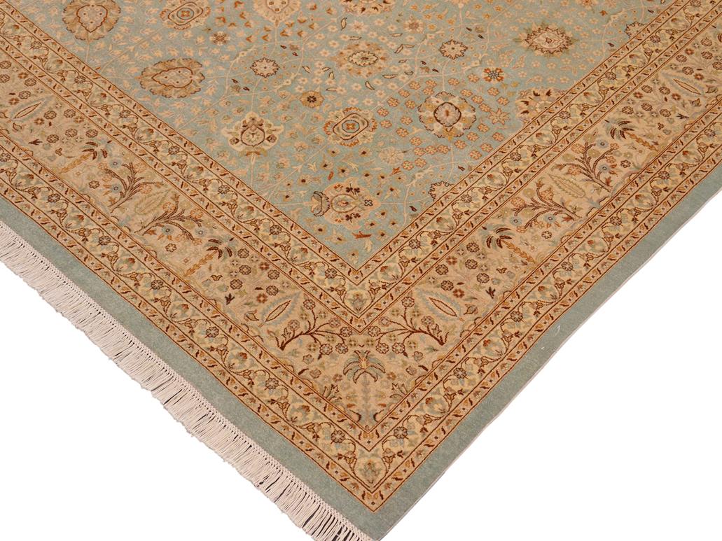 Designed with a mesmerizing intricate traditional motif this glorious hand knotted rug is a masterpiece that will fill any space with sophistication and grace. An exhilarating color pallet with an elaborate design, this masterpiece features luxurious hand spun wool with all vegetable dyes to add comfort and style to your decor. The design, color and beautiful chromatic composition with a sheen in traditional and transitional designs, exude beauty, elegance and quality make this rug a masterpiece of its own.