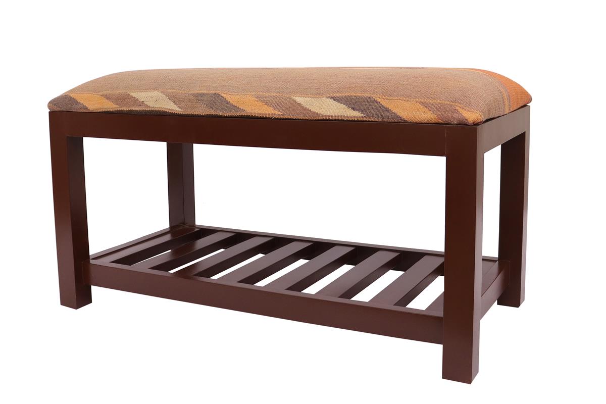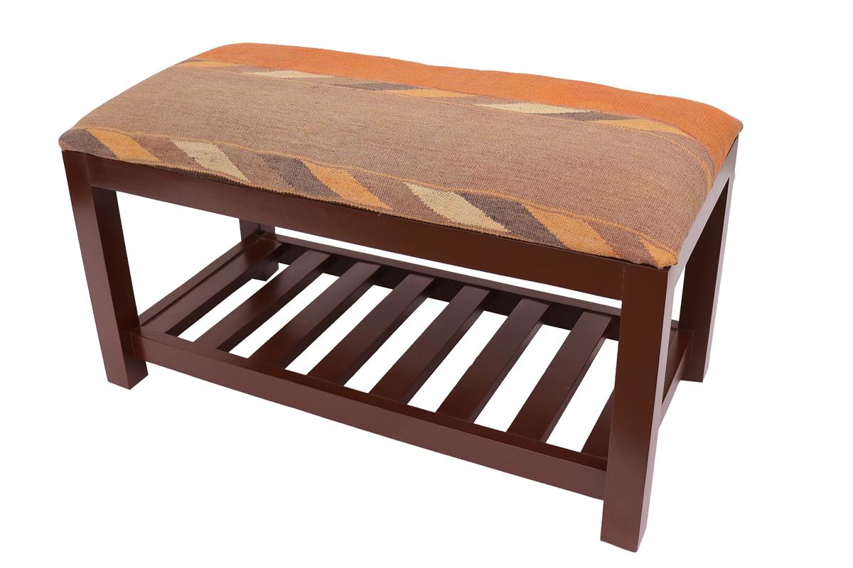 Southwestern Casas Kilim upholstered Handmade wood Storage Bench