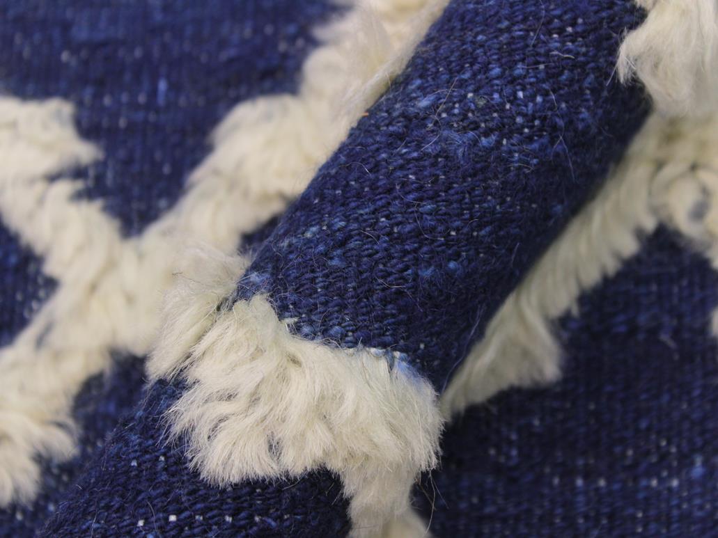 Abstract Moroccan High-Low Autumn Blue/Ivory Wool Rug - 8'0'' x 10'1''