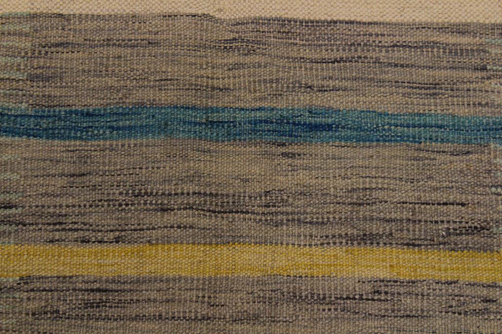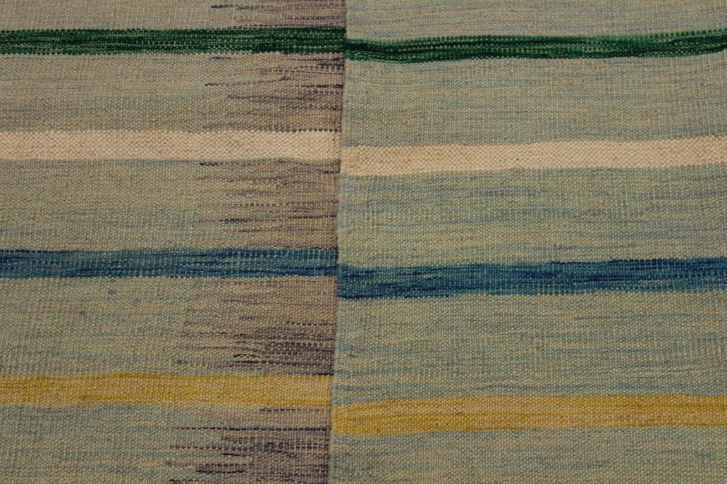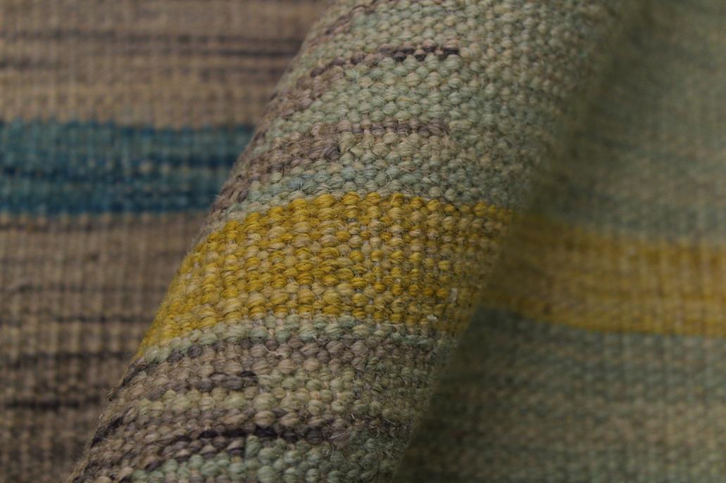 Elevate the elegance of your home with this stunning hand-woven tribal Kilim wool rug. Meticulously crafted on a loom by the Nomad Turkman people using hand-spun wool and 100% natural vegetable dyes, these rugs are recognized for their repetitive geometric patterns, incorporating naturalistic floral and traditional designs. The contemporary fashion palette results in bold, sharp patterns that are incredibly versatile, as the pattern is the same on both sides. These reversible rugs feature a lighter shade on one side and brighter colors on the other, providing versatility according to preference. These unique rugs are made by knotting short strands of different colors onto the warps and securing them by tightly pressing the wefts. The designs are created by interweaving the various colored wefts and warps. Kilims are known for their exceptional durability and versatility, making them truly unique rugs.