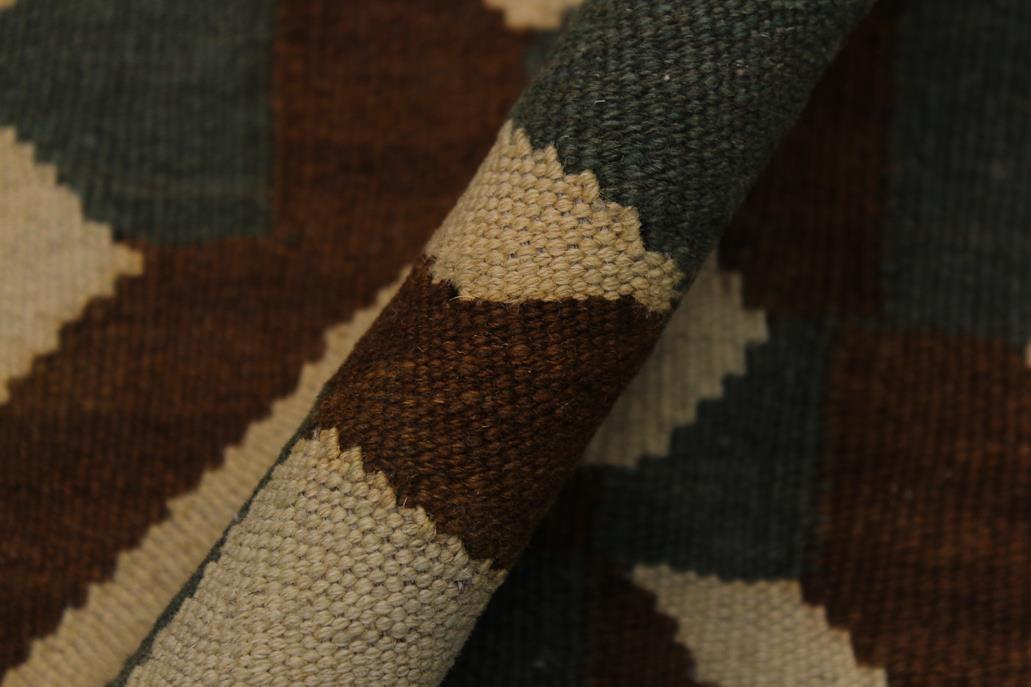 Elevate the elegance of your home with this stunning hand-woven tribal Kilim wool rug. Meticulously crafted on a loom by the Nomad Turkman people using hand-spun wool and 100% natural vegetable dyes, these rugs are recognized for their repetitive geometric patterns, incorporating naturalistic floral and traditional designs. The contemporary fashion palette results in bold, sharp patterns that are incredibly versatile, as the pattern is the same on both sides. These reversible rugs feature a lighter shade on one side and brighter colors on the other, providing versatility according to preference. These unique rugs are made by knotting short strands of different colors onto the warps and securing them by tightly pressing the wefts. The designs are created by interweaving the various colored wefts and warps. Kilims are known for their exceptional durability and versatility, making them truly unique rugs.