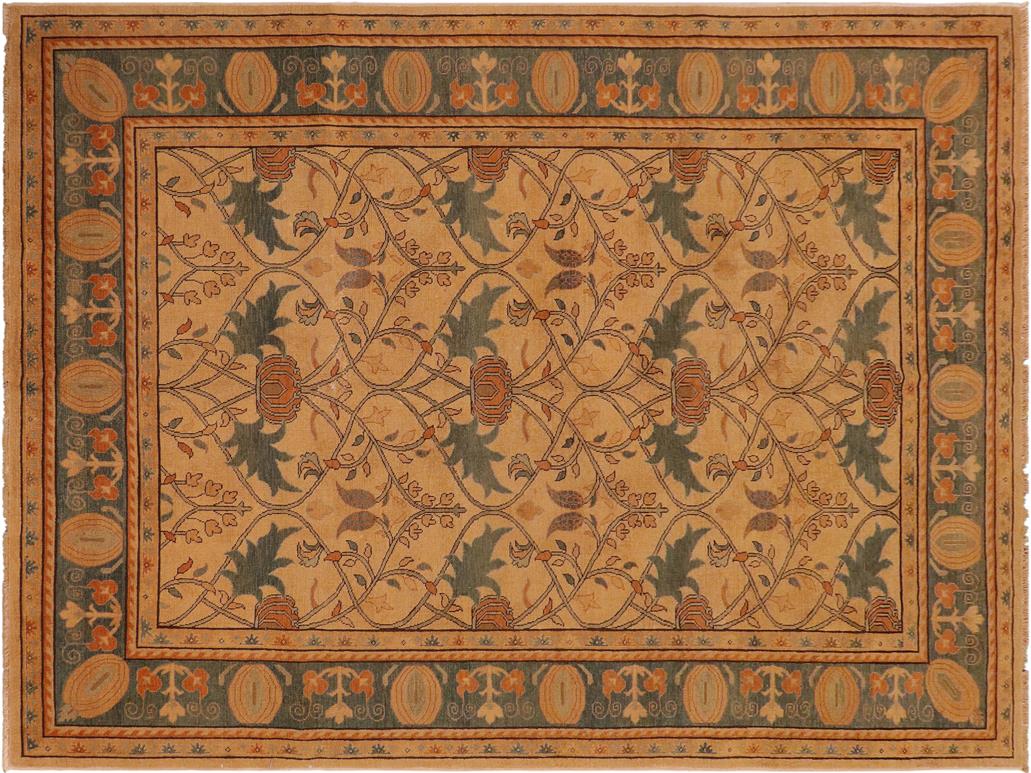 Antique Lavastone Low-Pile Corazon Tan/Green Wool Rug - 7'0'' x 9'8''