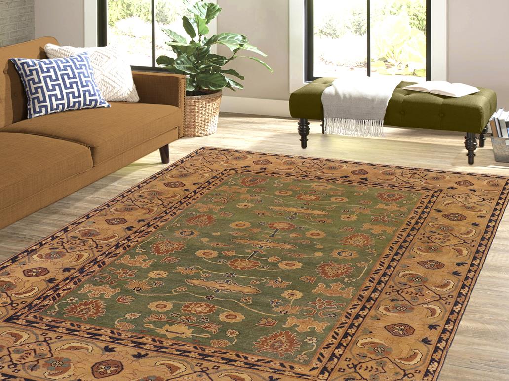 Antique Lavastone Low-Pile Henry Green/Gold Wool Rug - 7'3'' x 10'1''