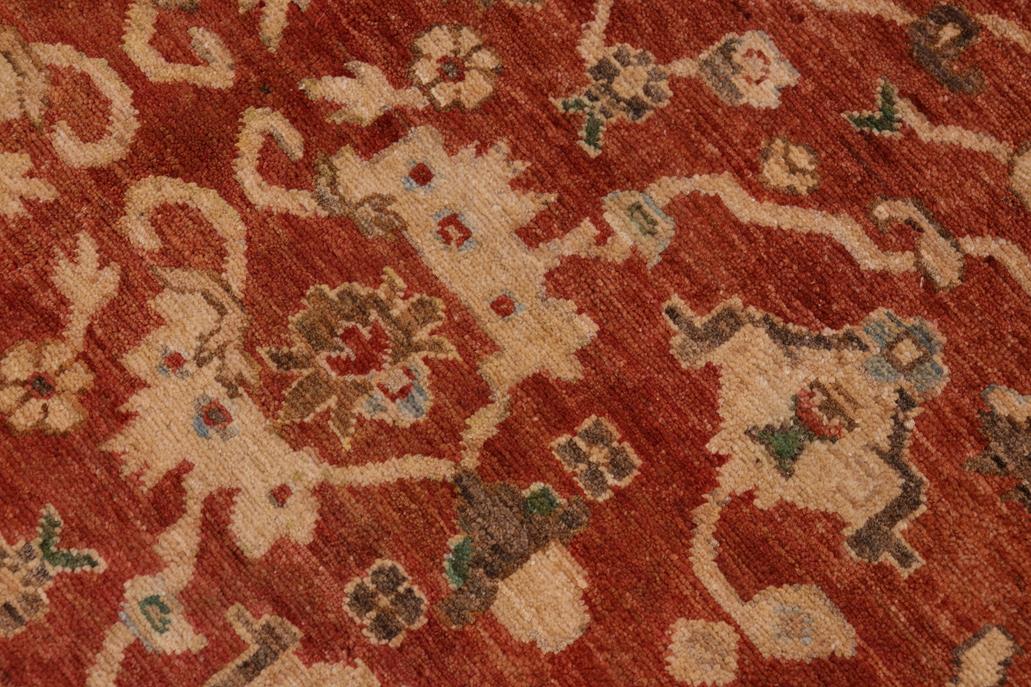 Enhance the ambiance of your home with this magnificent Persian-influenced Turkish hand-knotted rug made by skilled artisans capable of creating the most exceptional vegetable dyes and hand-spun wool. This exquisite handmade rug is a one-of-a-kind Peshawar Kafkaz, otherwise identified as Chobi, Chobi Peshawar, Oushak, or Ziegler rug. These handmade rugs are crafted in Pakistan utilizing superior-quality wool imported from Australia, New Zealand, and Korea in two types of weaves: the Persian weave and the Mori weave. This rug is meticulously crafted by hand using the finest natural vegetable dyes extracted from local plants. The artisans use a blend of hand-spun local and fine merino wool, resulting in a rug with a compelling texture, higher lanolin content, and longer staple. The artisans occasionally incorporate natural or artificial silk into the pile to enhance specific motifs. The finished product is an awe-inspiring execution of flawless design and an understated palette that exudes elegance. Contemporary Peshawar rugs draw inspiration from antique Persian designs and feature modern design motifs with vibrant color tones. Hand-knotted with all-natural dyes, resulting in a unique abrash effect and subtle color variations in the pile. Peshawar rugs are known for their stunning and vibrant colors, achieved through a process inspired by antique methods. The rug's pile is meticulously trimmed to a moderate thickness and then stone-washed and sun-dried, resulting in a natural sheen and pleasing color tones. Transform the ambiance of your room into a luxurious haven with this gorgeous rug featuring a beautiful color palette. This stunning rug features an intricate oriental design that showcases royalty and seamlessly complements any decor. Its hand-knotted construction and natural fibers provide a soft and comfortable feel underfoot, making it the perfect addition to any room.