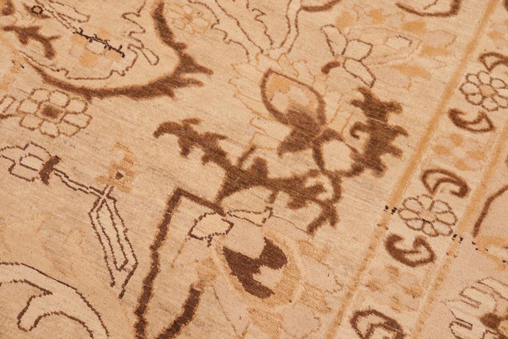 Enhance the ambiance of your home with this magnificent Persian-influenced Turkish hand-knotted rug made by skilled artisans capable of creating the most exceptional vegetable dyes and hand-spun wool. This exquisite handmade rug is a one-of-a-kind Peshawar Kafkaz, otherwise identified as Chobi, Chobi Peshawar, Oushak, or Ziegler rug. These handmade rugs are crafted in Pakistan utilizing superior-quality wool imported from Australia, New Zealand, and Korea in two types of weaves: the Persian weave and the Mori weave. This rug is meticulously crafted by hand using the finest natural vegetable dyes extracted from local plants. The artisans use a blend of hand-spun local and fine merino wool, resulting in a rug with a compelling texture, higher lanolin content, and longer staple. The artisans occasionally incorporate natural or artificial silk into the pile to enhance specific motifs. The finished product is an awe-inspiring execution of flawless design and an understated palette that exudes elegance. Contemporary Peshawar rugs draw inspiration from antique Persian designs and feature modern design motifs with vibrant color tones. Hand-knotted with all-natural dyes, resulting in a unique abrash effect and subtle color variations in the pile. Peshawar rugs are known for their stunning and vibrant colors, achieved through a process inspired by antique methods. The rug's pile is meticulously trimmed to a moderate thickness and then stone-washed and sun-dried, resulting in a natural sheen and pleasing color tones. Transform the ambiance of your room into a luxurious haven with this gorgeous rug featuring a beautiful color palette. This stunning rug features an intricate oriental design that showcases royalty and seamlessly complements any decor. Its hand-knotted construction and natural fibers provide a soft and comfortable feel underfoot, making it the perfect addition to any room.