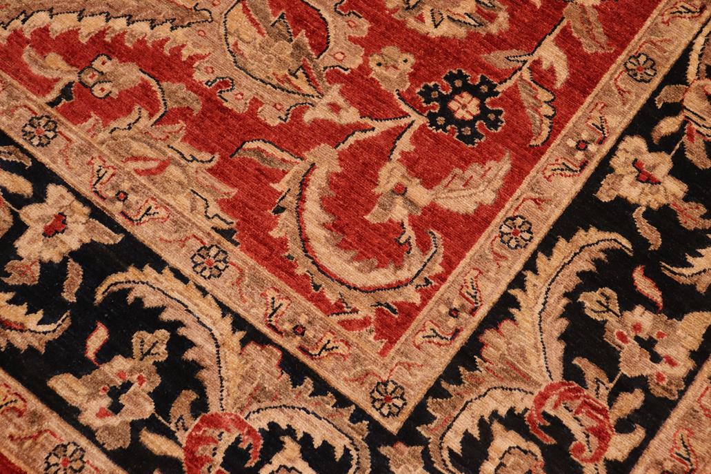 Enhance the ambiance of your home with this magnificent Persian-influenced Turkish hand-knotted rug made by skilled artisans capable of creating the most exceptional vegetable dyes and hand-spun wool. This exquisite handmade rug is a one-of-a-kind Peshawar Kafkaz, otherwise identified as Chobi, Chobi Peshawar, Oushak, or Ziegler rug. These handmade rugs are crafted in Pakistan utilizing superior-quality wool imported from Australia, New Zealand, and Korea in two types of weaves: the Persian weave and the Mori weave. This rug is meticulously crafted by hand using the finest natural vegetable dyes extracted from local plants. The artisans use a blend of hand-spun local and fine merino wool, resulting in a rug with a compelling texture, higher lanolin content, and longer staple. The artisans occasionally incorporate natural or artificial silk into the pile to enhance specific motifs. The finished product is an awe-inspiring execution of flawless design and an understated palette that exudes elegance. Contemporary Peshawar rugs draw inspiration from antique Persian designs and feature modern design motifs with vibrant color tones. Hand-knotted with all-natural dyes, resulting in a unique abrash effect and subtle color variations in the pile. Peshawar rugs are known for their stunning and vibrant colors, achieved through a process inspired by antique methods. The rug's pile is meticulously trimmed to a moderate thickness and then stone-washed and sun-dried, resulting in a natural sheen and pleasing color tones. Transform the ambiance of your room into a luxurious haven with this gorgeous rug featuring a beautiful color palette. This stunning rug features an intricate oriental design that showcases royalty and seamlessly complements any decor. Its hand-knotted construction and natural fibers provide a soft and comfortable feel underfoot, making it the perfect addition to any room.