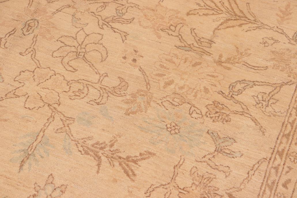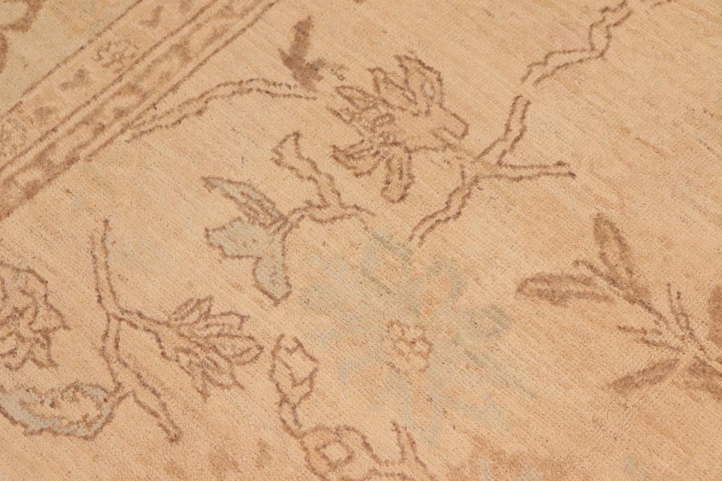 Enhance the ambiance of your home with this magnificent Persian-influenced Turkish hand-knotted rug made by skilled artisans capable of creating the most exceptional vegetable dyes and hand-spun wool. This exquisite handmade rug is a one-of-a-kind Peshawar Kafkaz, otherwise identified as Chobi, Chobi Peshawar, Oushak, or Ziegler rug. These handmade rugs are crafted in Pakistan utilizing superior-quality wool imported from Australia, New Zealand, and Korea in two types of weaves: the Persian weave and the Mori weave. This rug is meticulously crafted by hand using the finest natural vegetable dyes extracted from local plants. The artisans use a blend of hand-spun local and fine merino wool, resulting in a rug with a compelling texture, higher lanolin content, and longer staple. The artisans occasionally incorporate natural or artificial silk into the pile to enhance specific motifs. The finished product is an awe-inspiring execution of flawless design and an understated palette that exudes elegance. Contemporary Peshawar rugs draw inspiration from antique Persian designs and feature modern design motifs with vibrant color tones. Hand-knotted with all-natural dyes, resulting in a unique abrash effect and subtle color variations in the pile. Peshawar rugs are known for their stunning and vibrant colors, achieved through a process inspired by antique methods. The rug's pile is meticulously trimmed to a moderate thickness and then stone-washed and sun-dried, resulting in a natural sheen and pleasing color tones. Transform the ambiance of your room into a luxurious haven with this gorgeous rug featuring a beautiful color palette. This stunning rug features an intricate oriental design that showcases royalty and seamlessly complements any decor. Its hand-knotted construction and natural fibers provide a soft and comfortable feel underfoot, making it the perfect addition to any room.