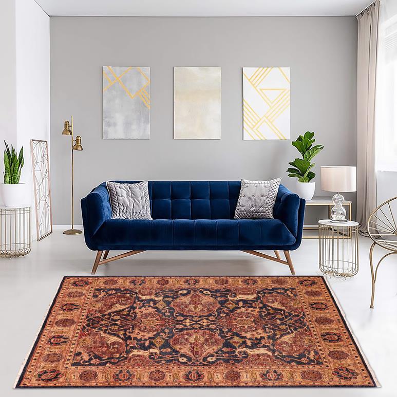 Oriental Ziegler Chastity Blue Gold Hand-Knotted Wool Rug - 5'2'' x 7'0''