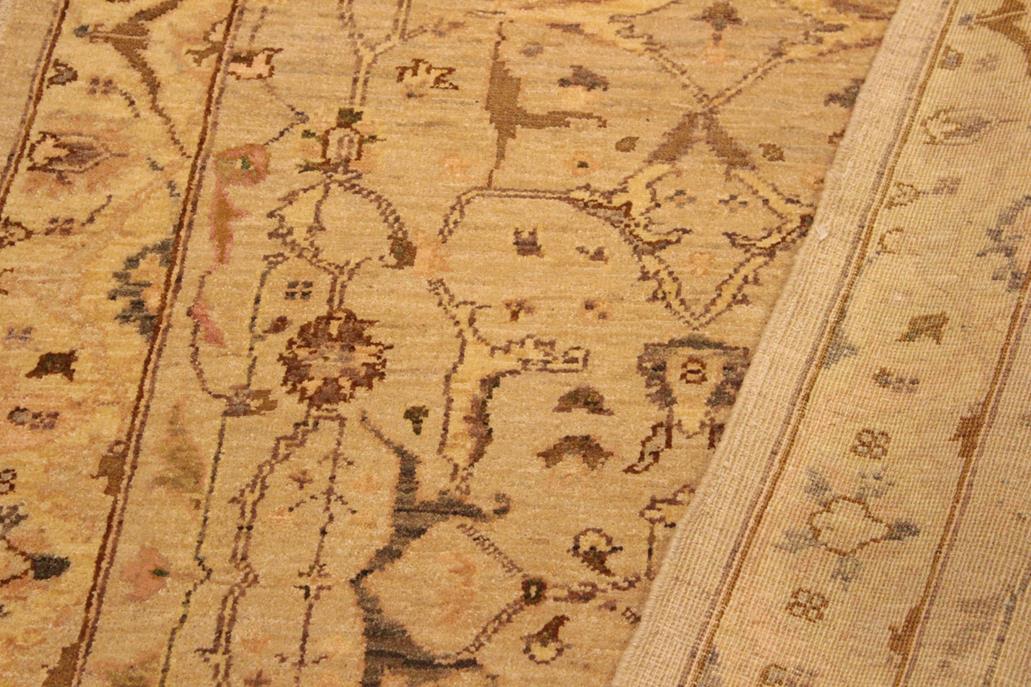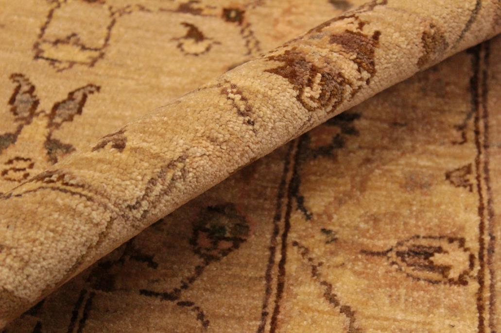 Enhance the ambiance of your home with this magnificent Persian-influenced Turkish hand-knotted rug made by skilled artisans capable of creating the most exceptional vegetable dyes and hand-spun wool. This exquisite handmade rug is a one-of-a-kind Peshawar Kafkaz, otherwise identified as Chobi, Chobi Peshawar, Oushak, or Ziegler rug. These handmade rugs are crafted in Pakistan utilizing superior-quality wool imported from Australia, New Zealand, and Korea in two types of weaves: the Persian weave and the Mori weave. This rug is meticulously crafted by hand using the finest natural vegetable dyes extracted from local plants. The artisans use a blend of hand-spun local and fine merino wool, resulting in a rug with a compelling texture, higher lanolin content, and longer staple. The artisans occasionally incorporate natural or artificial silk into the pile to enhance specific motifs. The finished product is an awe-inspiring execution of flawless design and an understated palette that exudes elegance. Contemporary Peshawar rugs draw inspiration from antique Persian designs and feature modern design motifs with vibrant color tones. Hand-knotted with all-natural dyes, resulting in a unique abrash effect and subtle color variations in the pile. Peshawar rugs are known for their stunning and vibrant colors, achieved through a process inspired by antique methods. The rug's pile is meticulously trimmed to a moderate thickness and then stone-washed and sun-dried, resulting in a natural sheen and pleasing color tones. Transform the ambiance of your room into a luxurious haven with this gorgeous rug featuring a beautiful color palette. This stunning rug features an intricate oriental design that showcases royalty and seamlessly complements any decor. Its hand-knotted construction and natural fibers provide a soft and comfortable feel underfoot, making it the perfect addition to any room.