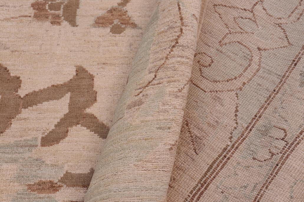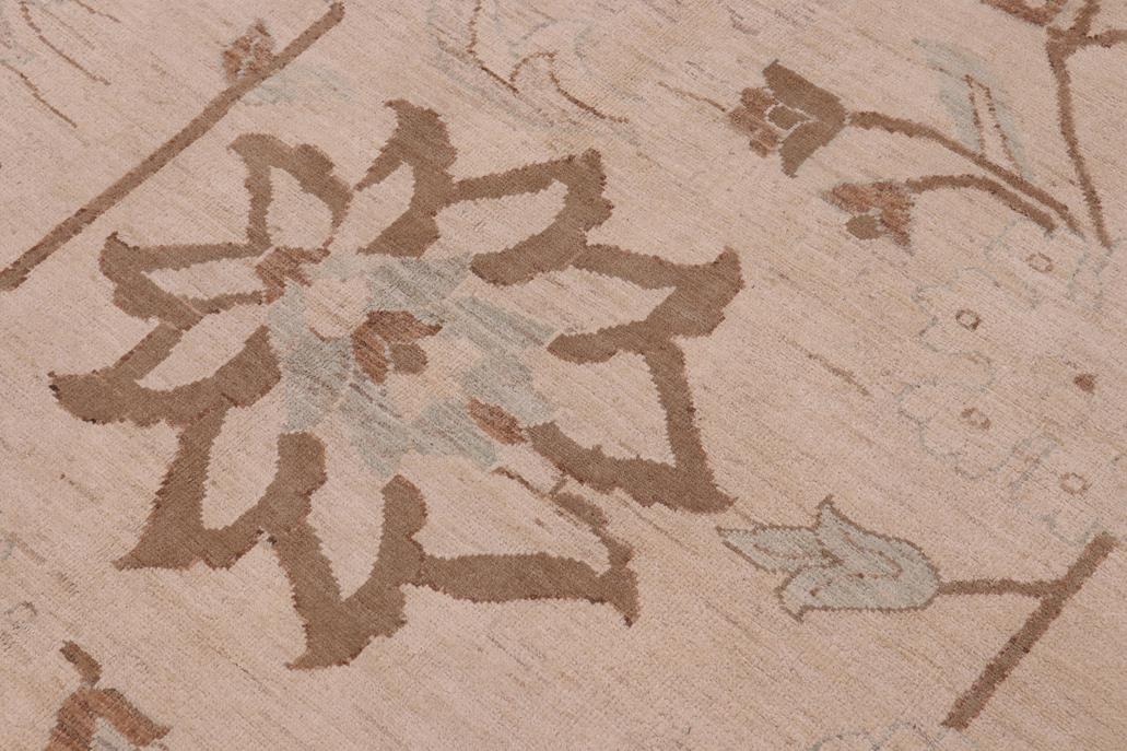 Enhance the ambiance of your home with this magnificent Persian-influenced Turkish hand-knotted rug made by skilled artisans capable of creating the most exceptional vegetable dyes and hand-spun wool. This exquisite handmade rug is a one-of-a-kind Peshawar Kafkaz, otherwise identified as Chobi, Chobi Peshawar, Oushak, or Ziegler rug. These handmade rugs are crafted in Pakistan utilizing superior-quality wool imported from Australia, New Zealand, and Korea in two types of weaves: the Persian weave and the Mori weave. This rug is meticulously crafted by hand using the finest natural vegetable dyes extracted from local plants. The artisans use a blend of hand-spun local and fine merino wool, resulting in a rug with a compelling texture, higher lanolin content, and longer staple. The artisans occasionally incorporate natural or artificial silk into the pile to enhance specific motifs. The finished product is an awe-inspiring execution of flawless design and an understated palette that exudes elegance. Contemporary Peshawar rugs draw inspiration from antique Persian designs and feature modern design motifs with vibrant color tones. Hand-knotted with all-natural dyes, resulting in a unique abrash effect and subtle color variations in the pile. Peshawar rugs are known for their stunning and vibrant colors, achieved through a process inspired by antique methods. The rug's pile is meticulously trimmed to a moderate thickness and then stone-washed and sun-dried, resulting in a natural sheen and pleasing color tones. Transform the ambiance of your room into a luxurious haven with this gorgeous rug featuring a beautiful color palette. This stunning rug features an intricate oriental design that showcases royalty and seamlessly complements any decor. Its hand-knotted construction and natural fibers provide a soft and comfortable feel underfoot, making it the perfect addition to any room.