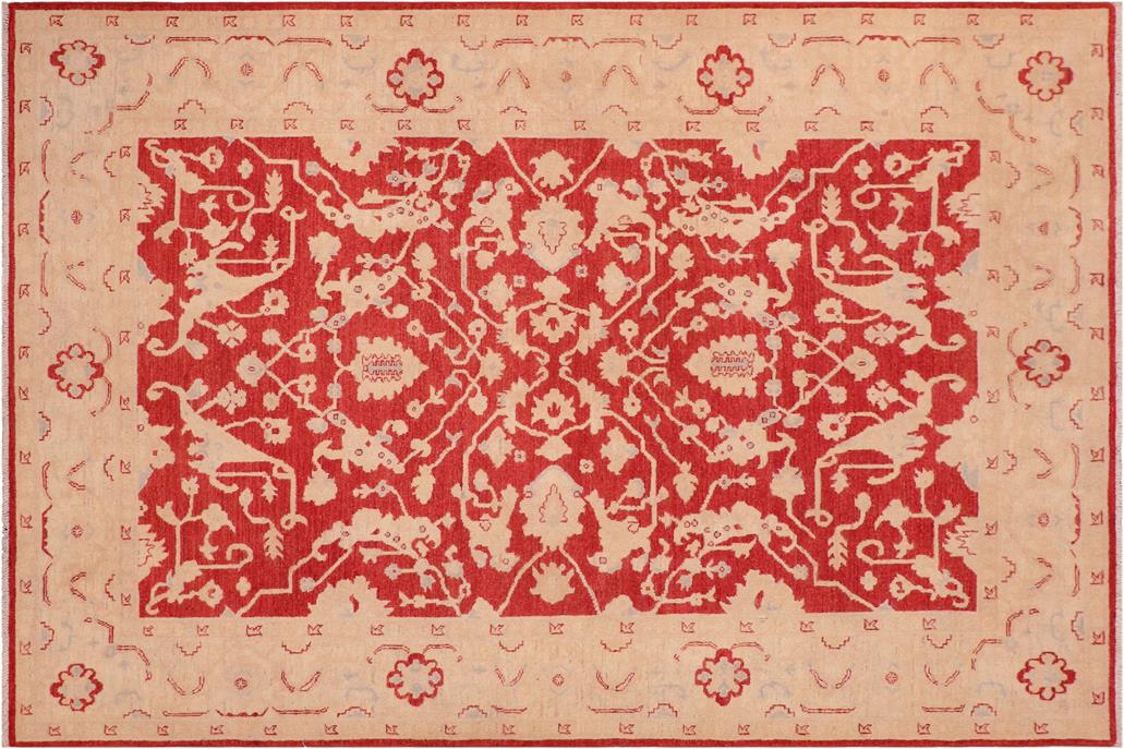 Oriental Ziegler Kandy Red Tan Hand-Knotted Wool Rug - 6'0'' x 8'10''