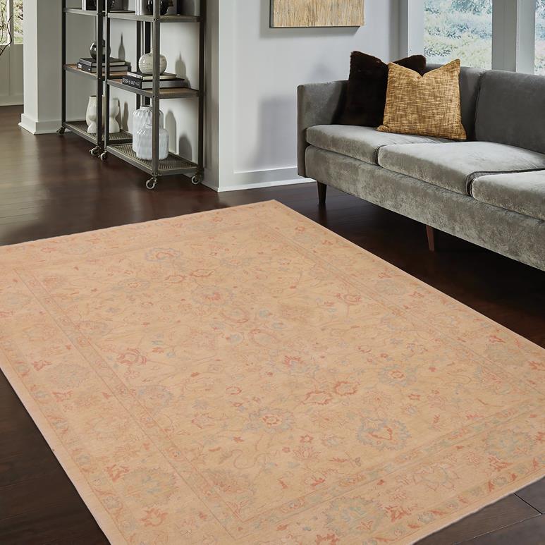 Shabby Chic Ziegler Joey Beige Blue Hand-Knotted Wool Rug - 9'7'' x 11'11''