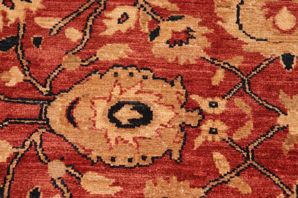 Enhance the ambiance of your home with this magnificent Persian-influenced Turkish hand-knotted rug made by skilled artisans capable of creating the most exceptional vegetable dyes and hand-spun wool. This exquisite handmade rug is a one-of-a-kind Peshawar Kafkaz, otherwise identified as Chobi, Chobi Peshawar, Oushak, or Ziegler rug. These handmade rugs are crafted in Pakistan utilizing superior-quality wool imported from Australia, New Zealand, and Korea in two types of weaves: the Persian weave and the Mori weave. This rug is meticulously crafted by hand using the finest natural vegetable dyes extracted from local plants. The artisans use a blend of hand-spun local and fine merino wool, resulting in a rug with a compelling texture, higher lanolin content, and longer staple. The artisans occasionally incorporate natural or artificial silk into the pile to enhance specific motifs. The finished product is an awe-inspiring execution of flawless design and an understated palette that exudes elegance. Contemporary Peshawar rugs draw inspiration from antique Persian designs and feature modern design motifs with vibrant color tones. Hand-knotted with all-natural dyes, resulting in a unique abrash effect and subtle color variations in the pile. Peshawar rugs are known for their stunning and vibrant colors, achieved through a process inspired by antique methods. The rug's pile is meticulously trimmed to a moderate thickness and then stone-washed and sun-dried, resulting in a natural sheen and pleasing color tones. Transform the ambiance of your room into a luxurious haven with this gorgeous rug featuring a beautiful color palette. This stunning rug features an intricate oriental design that showcases royalty and seamlessly complements any decor. Its hand-knotted construction and natural fibers provide a soft and comfortable feel underfoot, making it the perfect addition to any room.