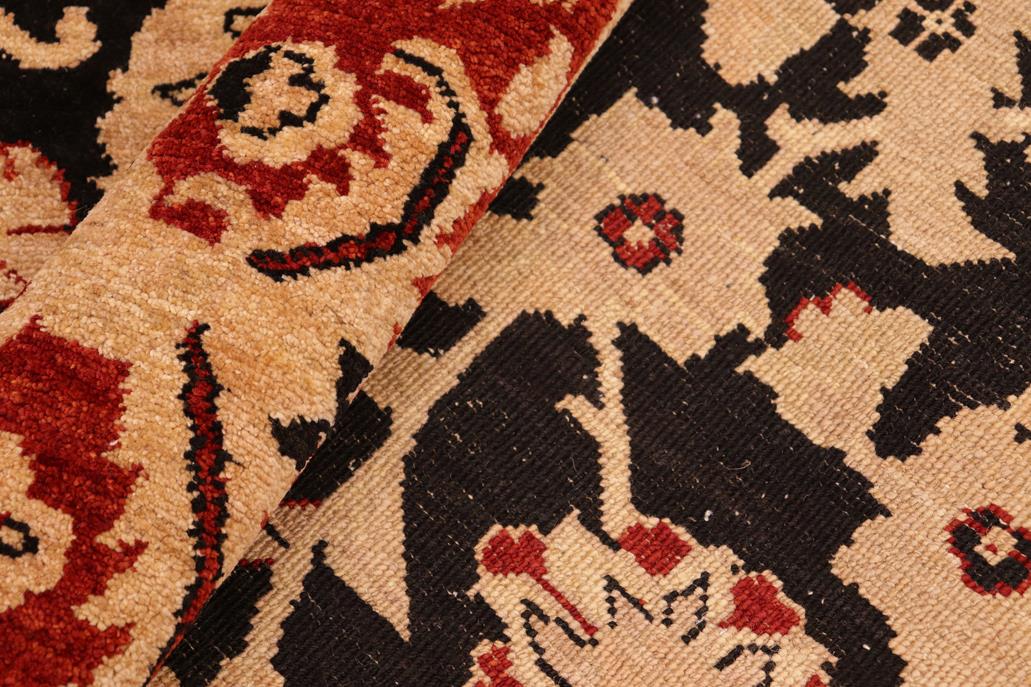 Enhance the ambiance of your home with this magnificent Persian-influenced Turkish hand-knotted rug made by skilled artisans capable of creating the most exceptional vegetable dyes and hand-spun wool. This exquisite handmade rug is a one-of-a-kind Peshawar Kafkaz, otherwise identified as Chobi, Chobi Peshawar, Oushak, or Ziegler rug. These handmade rugs are crafted in Pakistan utilizing superior-quality wool imported from Australia, New Zealand, and Korea in two types of weaves: the Persian weave and the Mori weave. This rug is meticulously crafted by hand using the finest natural vegetable dyes extracted from local plants. The artisans use a blend of hand-spun local and fine merino wool, resulting in a rug with a compelling texture, higher lanolin content, and longer staple. The artisans occasionally incorporate natural or artificial silk into the pile to enhance specific motifs. The finished product is an awe-inspiring execution of flawless design and an understated palette that exudes elegance. Contemporary Peshawar rugs draw inspiration from antique Persian designs and feature modern design motifs with vibrant color tones. Hand-knotted with all-natural dyes, resulting in a unique abrash effect and subtle color variations in the pile. Peshawar rugs are known for their stunning and vibrant colors, achieved through a process inspired by antique methods. The rug's pile is meticulously trimmed to a moderate thickness and then stone-washed and sun-dried, resulting in a natural sheen and pleasing color tones. Transform the ambiance of your room into a luxurious haven with this gorgeous rug featuring a beautiful color palette. This stunning rug features an intricate oriental design that showcases royalty and seamlessly complements any decor. Its hand-knotted construction and natural fibers provide a soft and comfortable feel underfoot, making it the perfect addition to any room.