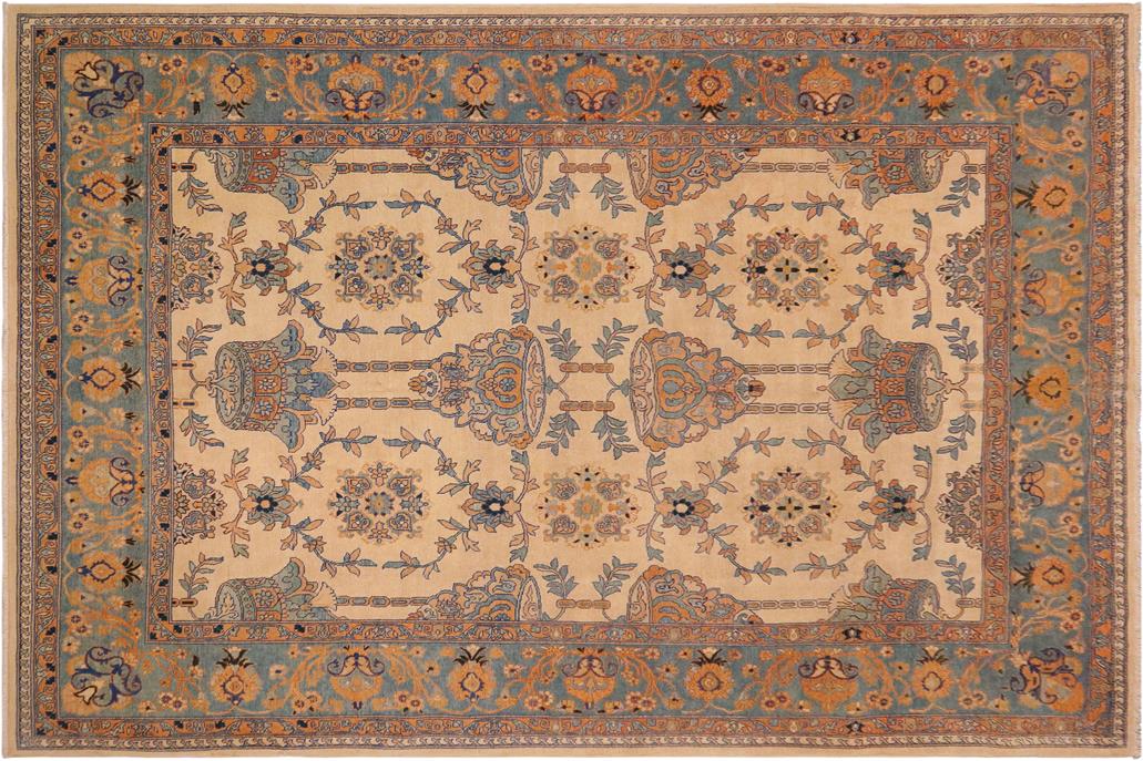 Oriental Ziegler Sana Beige Turquoise Hand-Knotted Wool Rug - 9'0'' x 11'5''
