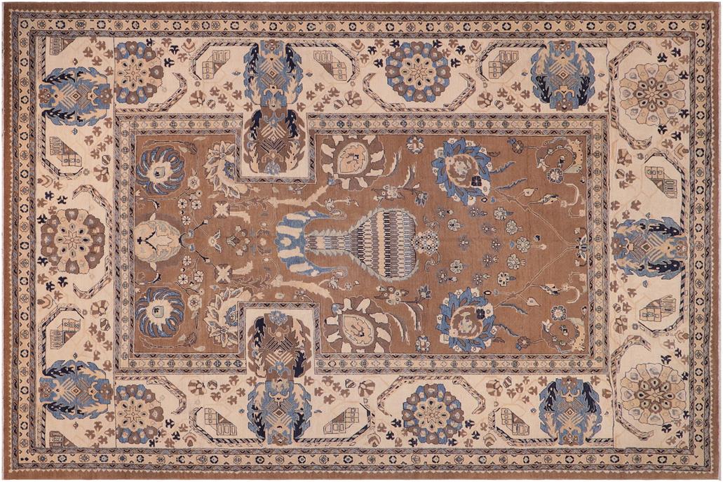 Boho Chic Ziegler Vasiliki Brown Ivory Hand-Knotted Wool Rug - 10'8'' x 14'11''
