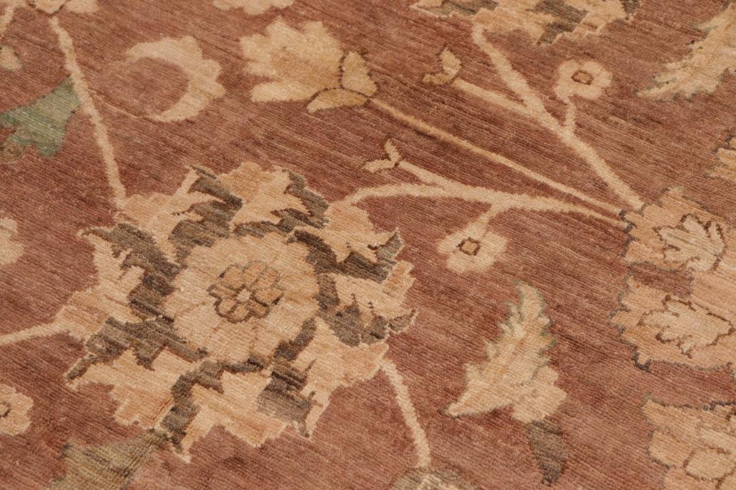 Enhance the ambiance of your home with this magnificent Persian-influenced Turkish hand-knotted rug made by skilled artisans capable of creating the most exceptional vegetable dyes and hand-spun wool. This exquisite handmade rug is a one-of-a-kind Peshawar Kafkaz, otherwise identified as Chobi, Chobi Peshawar, Oushak, or Ziegler rug. These handmade rugs are crafted in Pakistan utilizing superior-quality wool imported from Australia, New Zealand, and Korea in two types of weaves: the Persian weave and the Mori weave. This rug is meticulously crafted by hand using the finest natural vegetable dyes extracted from local plants. The artisans use a blend of hand-spun local and fine merino wool, resulting in a rug with a compelling texture, higher lanolin content, and longer staple. The artisans occasionally incorporate natural or artificial silk into the pile to enhance specific motifs. The finished product is an awe-inspiring execution of flawless design and an understated palette that exudes elegance. Contemporary Peshawar rugs draw inspiration from antique Persian designs and feature modern design motifs with vibrant color tones. Hand-knotted with all-natural dyes, resulting in a unique abrash effect and subtle color variations in the pile. Peshawar rugs are known for their stunning and vibrant colors, achieved through a process inspired by antique methods. The rug's pile is meticulously trimmed to a moderate thickness and then stone-washed and sun-dried, resulting in a natural sheen and pleasing color tones. Transform the ambiance of your room into a luxurious haven with this gorgeous rug featuring a beautiful color palette. This stunning rug features an intricate oriental design that showcases royalty and seamlessly complements any decor. Its hand-knotted construction and natural fibers provide a soft and comfortable feel underfoot, making it the perfect addition to any room.