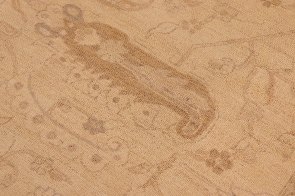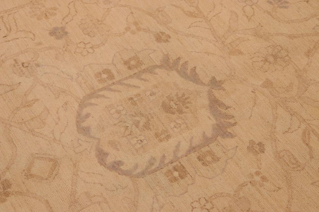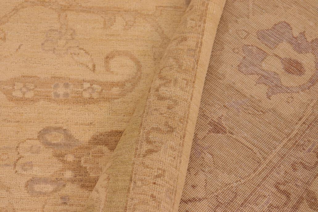 Enhance the ambiance of your home with this magnificent Persian-influenced Turkish hand-knotted rug made by skilled artisans capable of creating the most exceptional vegetable dyes and hand-spun wool. This exquisite handmade rug is a one-of-a-kind Peshawar Kafkaz, otherwise identified as Chobi, Chobi Peshawar, Oushak, or Ziegler rug. These handmade rugs are crafted in Pakistan utilizing superior-quality wool imported from Australia, New Zealand, and Korea in two types of weaves: the Persian weave and the Mori weave. This rug is meticulously crafted by hand using the finest natural vegetable dyes extracted from local plants. The artisans use a blend of hand-spun local and fine merino wool, resulting in a rug with a compelling texture, higher lanolin content, and longer staple. The artisans occasionally incorporate natural or artificial silk into the pile to enhance specific motifs. The finished product is an awe-inspiring execution of flawless design and an understated palette that exudes elegance. Contemporary Peshawar rugs draw inspiration from antique Persian designs and feature modern design motifs with vibrant color tones. Hand-knotted with all-natural dyes, resulting in a unique abrash effect and subtle color variations in the pile. Peshawar rugs are known for their stunning and vibrant colors, achieved through a process inspired by antique methods. The rug's pile is meticulously trimmed to a moderate thickness and then stone-washed and sun-dried, resulting in a natural sheen and pleasing color tones. Transform the ambiance of your room into a luxurious haven with this gorgeous rug featuring a beautiful color palette. This stunning rug features an intricate oriental design that showcases royalty and seamlessly complements any decor. Its hand-knotted construction and natural fibers provide a soft and comfortable feel underfoot, making it the perfect addition to any room.