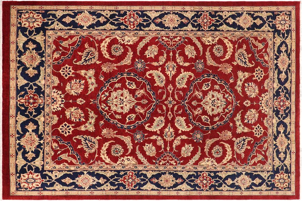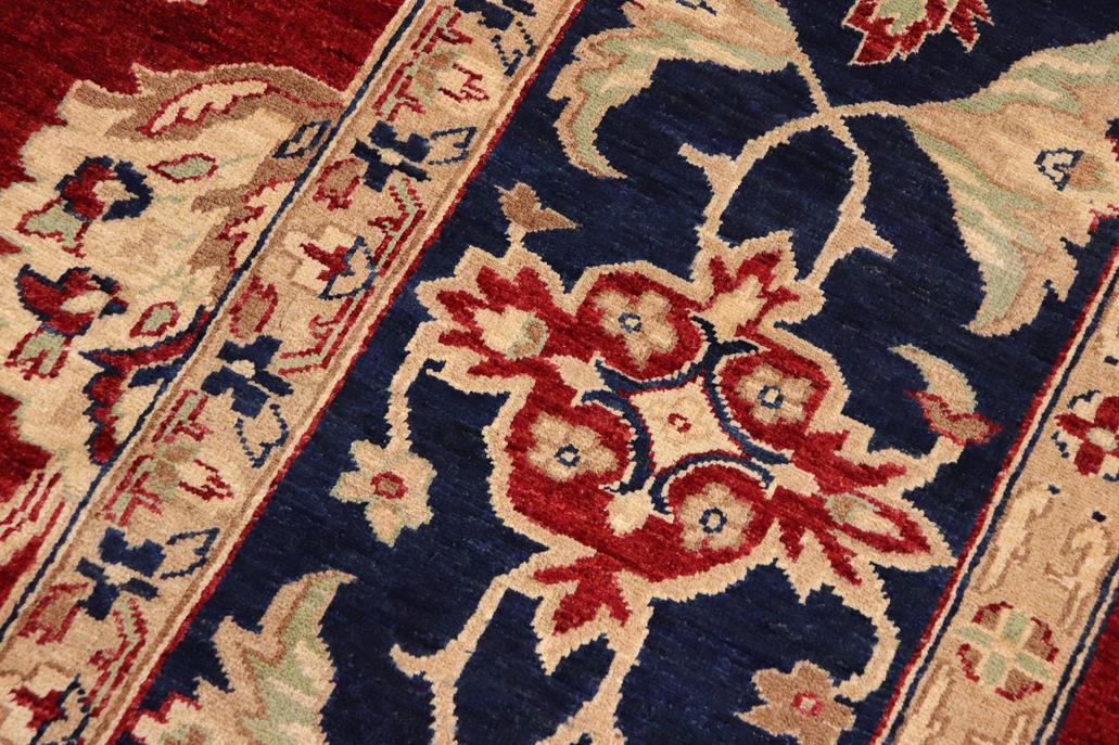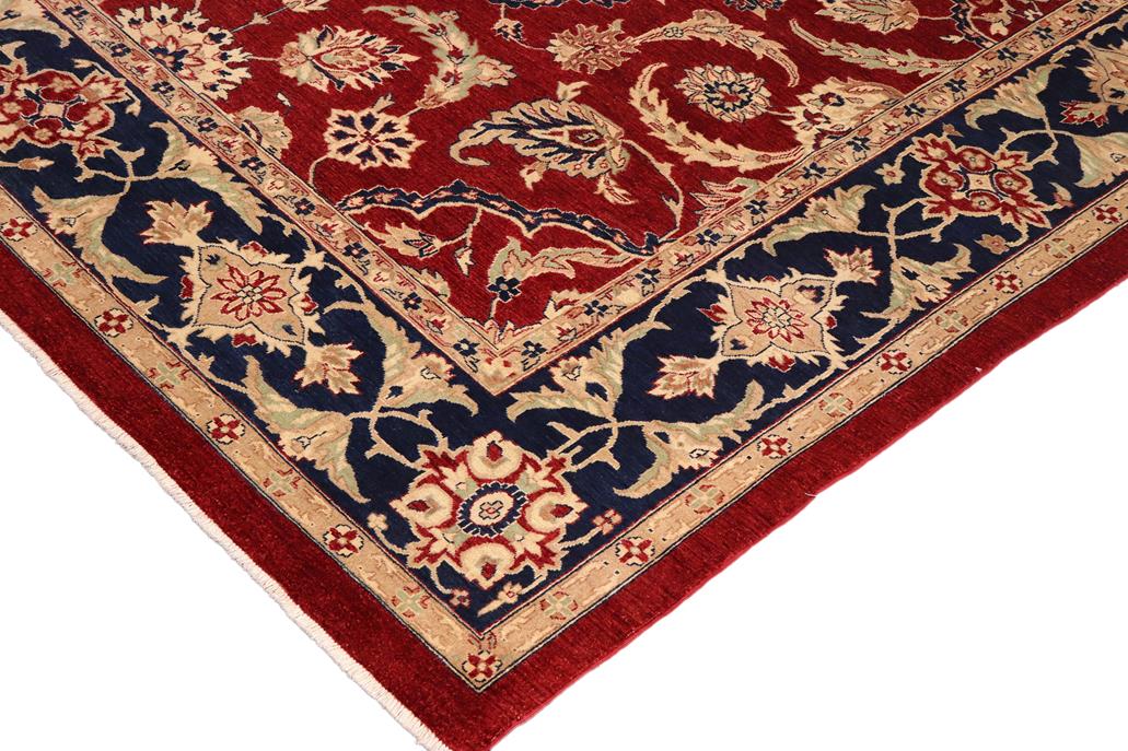 Oriental Ziegler Glennie Red Blue Hand-Knotted Wool Rug - 10'6'' x 13'10''