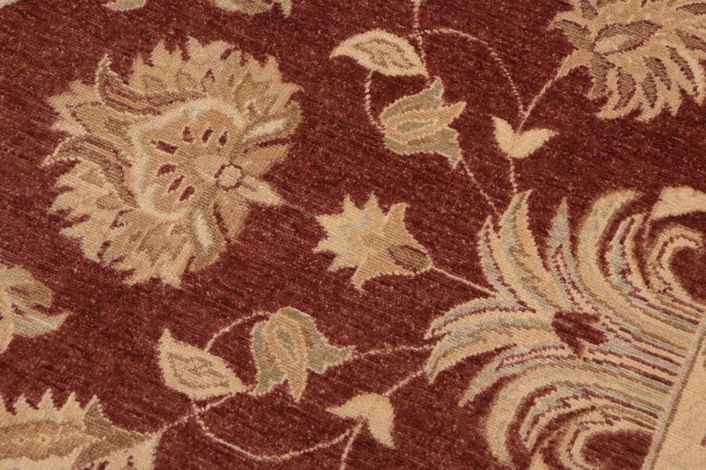 Enhance the ambiance of your home with this magnificent Persian-influenced Turkish hand-knotted rug made by skilled artisans capable of creating the most exceptional vegetable dyes and hand-spun wool. This exquisite handmade rug is a one-of-a-kind Peshawar Kafkaz, otherwise identified as Chobi, Chobi Peshawar, Oushak, or Ziegler rug. These handmade rugs are crafted in Pakistan utilizing superior-quality wool imported from Australia, New Zealand, and Korea in two types of weaves: the Persian weave and the Mori weave. This rug is meticulously crafted by hand using the finest natural vegetable dyes extracted from local plants. The artisans use a blend of hand-spun local and fine merino wool, resulting in a rug with a compelling texture, higher lanolin content, and longer staple. The artisans occasionally incorporate natural or artificial silk into the pile to enhance specific motifs. The finished product is an awe-inspiring execution of flawless design and an understated palette that exudes elegance. Contemporary Peshawar rugs draw inspiration from antique Persian designs and feature modern design motifs with vibrant color tones. Hand-knotted with all-natural dyes, resulting in a unique abrash effect and subtle color variations in the pile. Peshawar rugs are known for their stunning and vibrant colors, achieved through a process inspired by antique methods. The rug's pile is meticulously trimmed to a moderate thickness and then stone-washed and sun-dried, resulting in a natural sheen and pleasing color tones. Transform the ambiance of your room into a luxurious haven with this gorgeous rug featuring a beautiful color palette. This stunning rug features an intricate oriental design that showcases royalty and seamlessly complements any decor. Its hand-knotted construction and natural fibers provide a soft and comfortable feel underfoot, making it the perfect addition to any room.