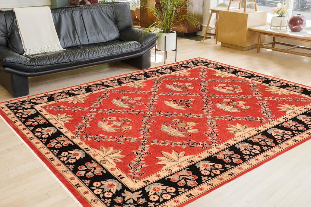 Oriental Ziegler Alisia Red Black Hand-Knotted Wool Rug - 9'0'' x 11'10''