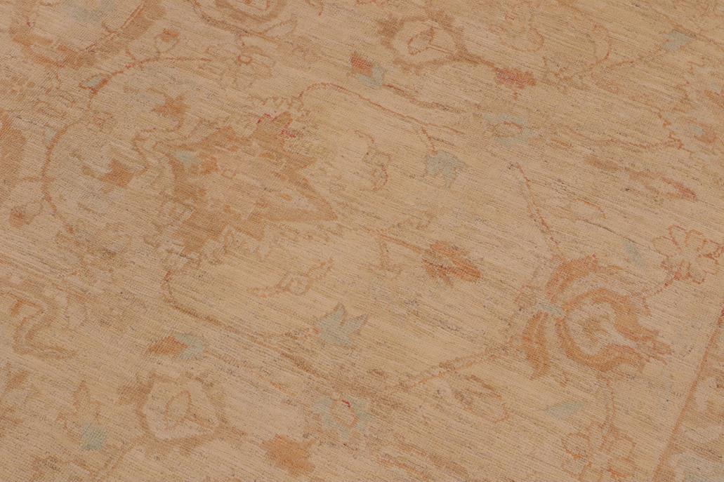 Enhance the ambiance of your home with this magnificent Persian-influenced Turkish hand-knotted rug made by skilled artisans capable of creating the most exceptional vegetable dyes and hand-spun wool. This exquisite handmade rug is a one-of-a-kind Peshawar Kafkaz, otherwise identified as Chobi, Chobi Peshawar, Oushak, or Ziegler rug. These handmade rugs are crafted in Pakistan utilizing superior-quality wool imported from Australia, New Zealand, and Korea in two types of weaves: the Persian weave and the Mori weave. This rug is meticulously crafted by hand using the finest natural vegetable dyes extracted from local plants. The artisans use a blend of hand-spun local and fine merino wool, resulting in a rug with a compelling texture, higher lanolin content, and longer staple. The artisans occasionally incorporate natural or artificial silk into the pile to enhance specific motifs. The finished product is an awe-inspiring execution of flawless design and an understated palette that exudes elegance. Contemporary Peshawar rugs draw inspiration from antique Persian designs and feature modern design motifs with vibrant color tones. Hand-knotted with all-natural dyes, resulting in a unique abrash effect and subtle color variations in the pile. Peshawar rugs are known for their stunning and vibrant colors, achieved through a process inspired by antique methods. The rug's pile is meticulously trimmed to a moderate thickness and then stone-washed and sun-dried, resulting in a natural sheen and pleasing color tones. Transform the ambiance of your room into a luxurious haven with this gorgeous rug featuring a beautiful color palette. This stunning rug features an intricate oriental design that showcases royalty and seamlessly complements any decor. Its hand-knotted construction and natural fibers provide a soft and comfortable feel underfoot, making it the perfect addition to any room.