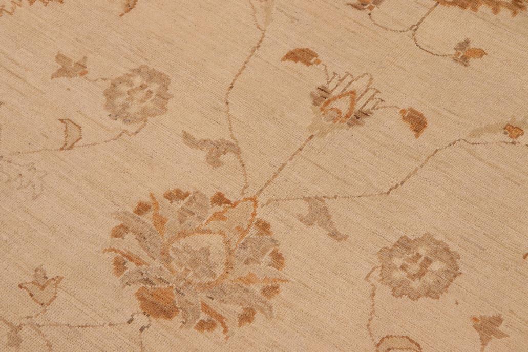 Enhance the ambiance of your home with this magnificent Persian-influenced Turkish hand-knotted rug made by skilled artisans capable of creating the most exceptional vegetable dyes and hand-spun wool. This exquisite handmade rug is a one-of-a-kind Peshawar Kafkaz, otherwise identified as Chobi, Chobi Peshawar, Oushak, or Ziegler rug. These handmade rugs are crafted in Pakistan utilizing superior-quality wool imported from Australia, New Zealand, and Korea in two types of weaves: the Persian weave and the Mori weave. This rug is meticulously crafted by hand using the finest natural vegetable dyes extracted from local plants. The artisans use a blend of hand-spun local and fine merino wool, resulting in a rug with a compelling texture, higher lanolin content, and longer staple. The artisans occasionally incorporate natural or artificial silk into the pile to enhance specific motifs. The finished product is an awe-inspiring execution of flawless design and an understated palette that exudes elegance. Contemporary Peshawar rugs draw inspiration from antique Persian designs and feature modern design motifs with vibrant color tones. Hand-knotted with all-natural dyes, resulting in a unique abrash effect and subtle color variations in the pile. Peshawar rugs are known for their stunning and vibrant colors, achieved through a process inspired by antique methods. The rug's pile is meticulously trimmed to a moderate thickness and then stone-washed and sun-dried, resulting in a natural sheen and pleasing color tones. Transform the ambiance of your room into a luxurious haven with this gorgeous rug featuring a beautiful color palette. This stunning rug features an intricate oriental design that showcases royalty and seamlessly complements any decor. Its hand-knotted construction and natural fibers provide a soft and comfortable feel underfoot, making it the perfect addition to any room.