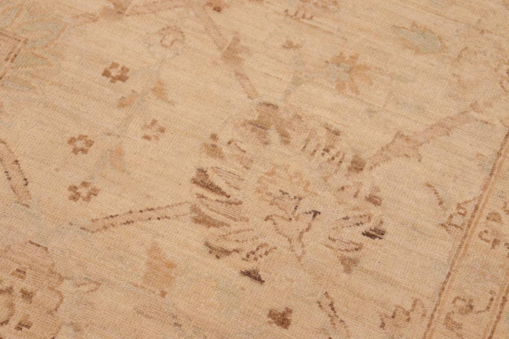 Enhance the ambiance of your home with this magnificent Persian-influenced Turkish hand-knotted rug made by skilled artisans capable of creating the most exceptional vegetable dyes and hand-spun wool. This exquisite handmade rug is a one-of-a-kind Peshawar Kafkaz, otherwise identified as Chobi, Chobi Peshawar, Oushak, or Ziegler rug. These handmade rugs are crafted in Pakistan utilizing superior-quality wool imported from Australia, New Zealand, and Korea in two types of weaves: the Persian weave and the Mori weave. This rug is meticulously crafted by hand using the finest natural vegetable dyes extracted from local plants. The artisans use a blend of hand-spun local and fine merino wool, resulting in a rug with a compelling texture, higher lanolin content, and longer staple. The artisans occasionally incorporate natural or artificial silk into the pile to enhance specific motifs. The finished product is an awe-inspiring execution of flawless design and an understated palette that exudes elegance. Contemporary Peshawar rugs draw inspiration from antique Persian designs and feature modern design motifs with vibrant color tones. Hand-knotted with all-natural dyes, resulting in a unique abrash effect and subtle color variations in the pile. Peshawar rugs are known for their stunning and vibrant colors, achieved through a process inspired by antique methods. The rug's pile is meticulously trimmed to a moderate thickness and then stone-washed and sun-dried, resulting in a natural sheen and pleasing color tones. Transform the ambiance of your room into a luxurious haven with this gorgeous rug featuring a beautiful color palette. This stunning rug features an intricate oriental design that showcases royalty and seamlessly complements any decor. Its hand-knotted construction and natural fibers provide a soft and comfortable feel underfoot, making it the perfect addition to any room.