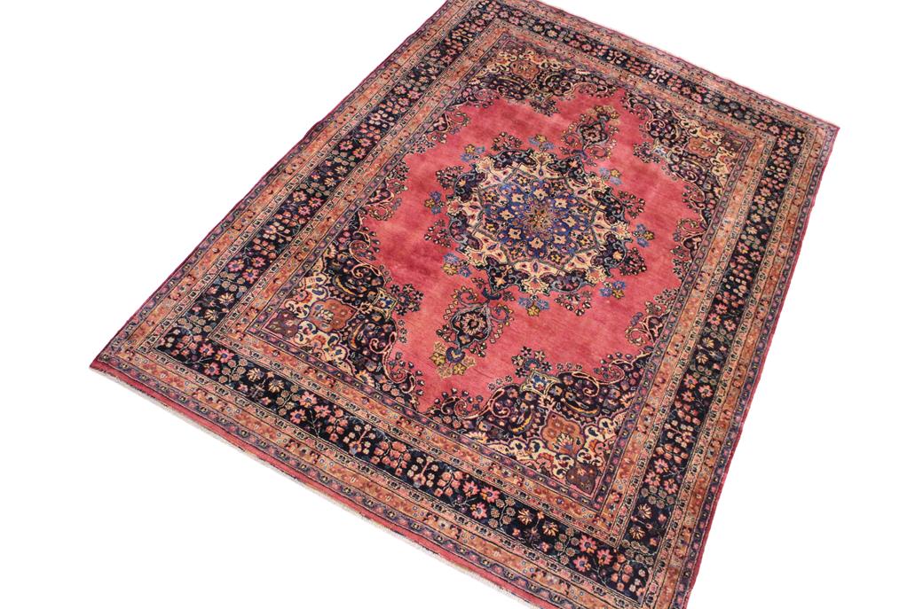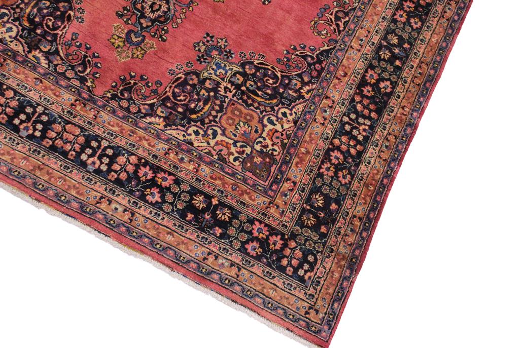 Vintage Antique Cornwell Pink Blue Hand Knotted Wool Rug- 8'0'' x 11'1''