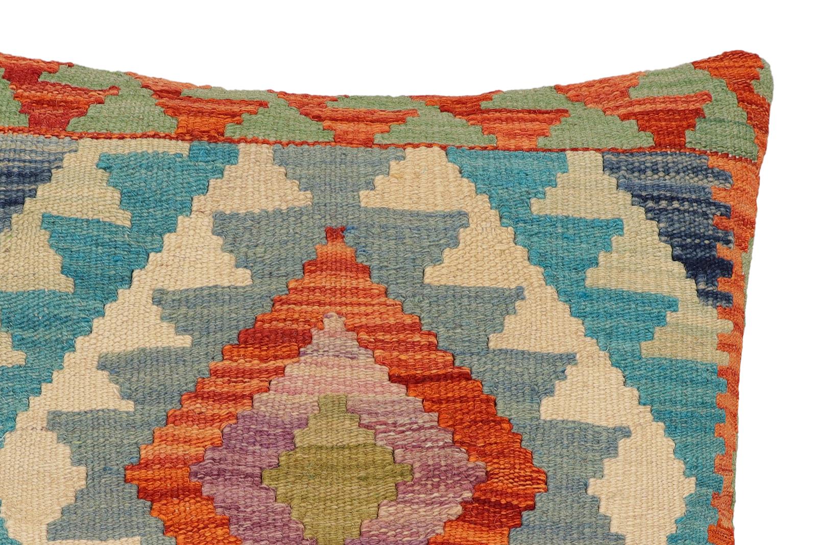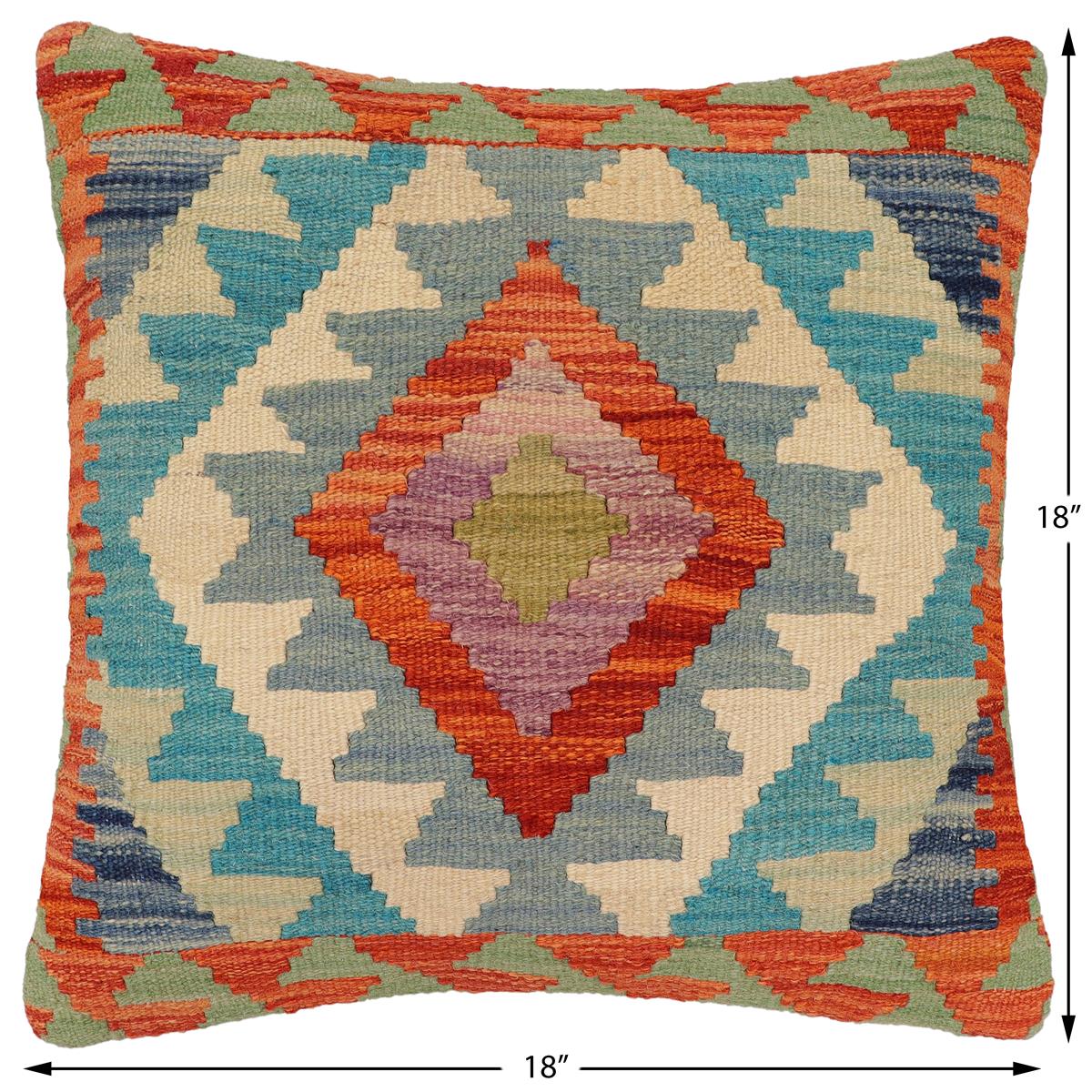 Bohemian Klein Turkish Hand-Woven Kilim Pillow