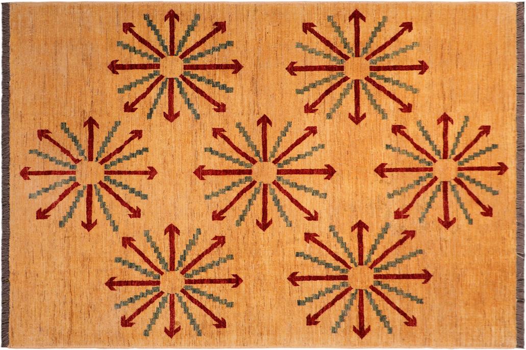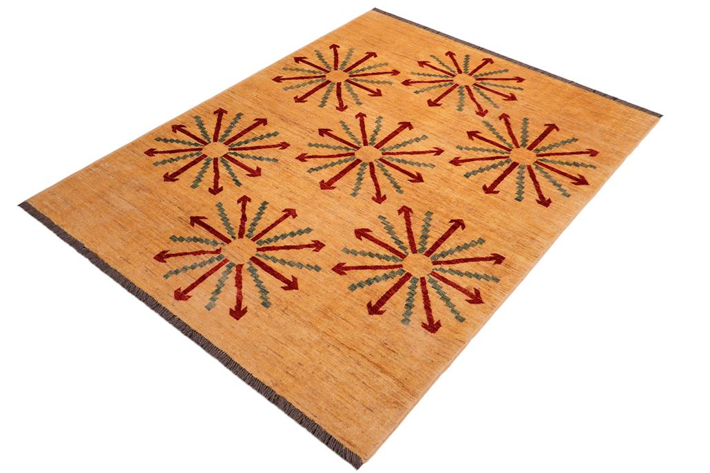 Classic Ziegler Louann Tan Red Hand-Knotted Wool Rug - 5'2'' x 6'8''