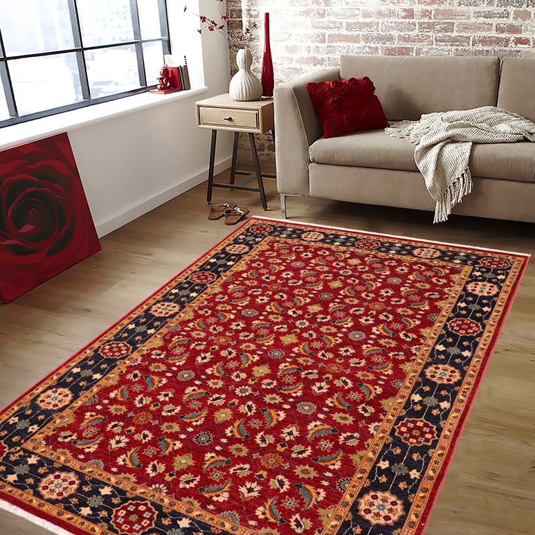 Bohemien Ziegler Gabriel Red Blue Hand-Knotted Wool Rug - 6'2'' x 9'0''