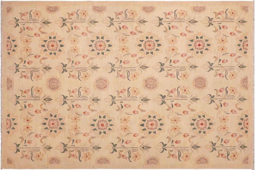 Shabby Chic Ziegler Donald Tan Green Hand-Knotted Wool Rug - 5'10'' x 8'8''