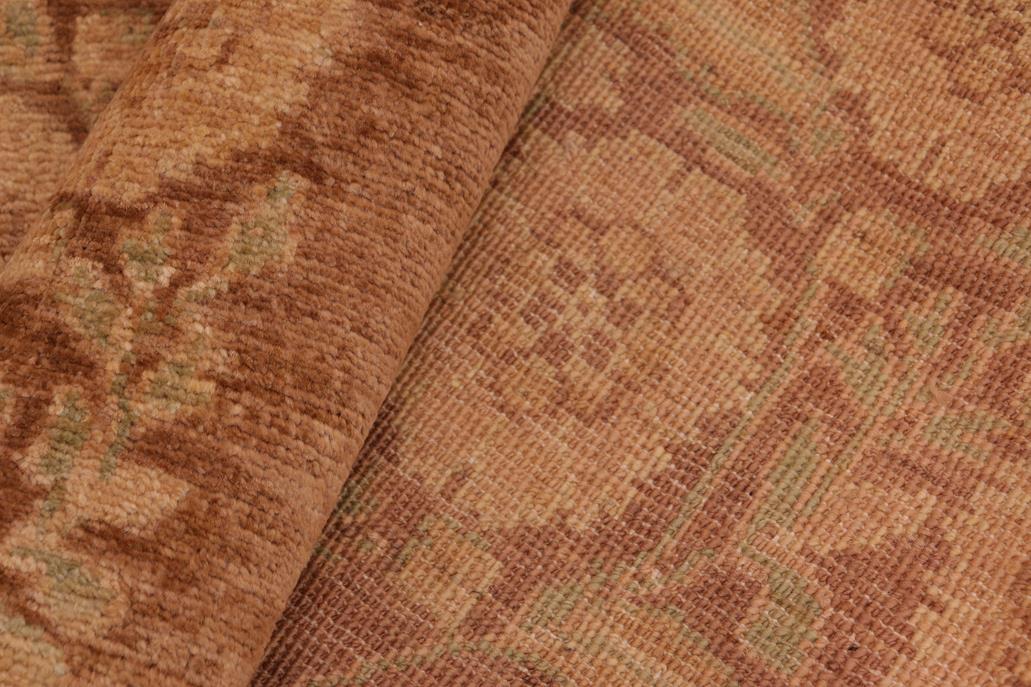 Enhance the ambiance of your home with this magnificent Persian-influenced Turkish hand-knotted rug made by skilled artisans capable of creating the most exceptional vegetable dyes and hand-spun wool. This exquisite handmade rug is a one-of-a-kind Peshawar Kafkaz, otherwise identified as Chobi, Chobi Peshawar, Oushak, or Ziegler rug. These handmade rugs are crafted in Pakistan utilizing superior-quality wool imported from Australia, New Zealand, and Korea in two types of weaves: the Persian weave and the Mori weave. This rug is meticulously crafted by hand using the finest natural vegetable dyes extracted from local plants. The artisans use a blend of hand-spun local and fine merino wool, resulting in a rug with a compelling texture, higher lanolin content, and longer staple. The artisans occasionally incorporate natural or artificial silk into the pile to enhance specific motifs. The finished product is an awe-inspiring execution of flawless design and an understated palette that exudes elegance. Contemporary Peshawar rugs draw inspiration from antique Persian designs and feature modern design motifs with vibrant color tones. Hand-knotted with all-natural dyes, resulting in a unique abrash effect and subtle color variations in the pile. Peshawar rugs are known for their stunning and vibrant colors, achieved through a process inspired by antique methods. The rug's pile is meticulously trimmed to a moderate thickness and then stone-washed and sun-dried, resulting in a natural sheen and pleasing color tones. Transform the ambiance of your room into a luxurious haven with this gorgeous rug featuring a beautiful color palette. This stunning rug features an intricate oriental design that showcases royalty and seamlessly complements any decor. Its hand-knotted construction and natural fibers provide a soft and comfortable feel underfoot, making it the perfect addition to any room.