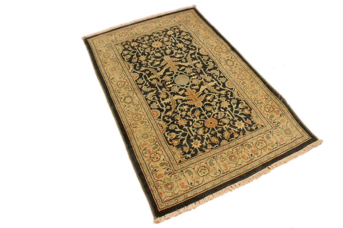 Kafkaz Sun-Faded Shantel Charcoal/Green Hand-Knotted Rug 3'1 x 4'10