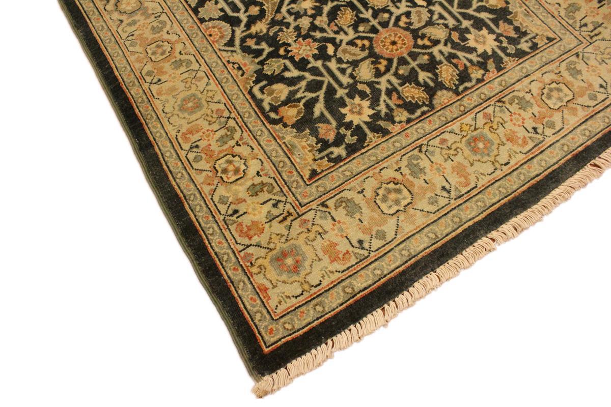 A Persian influenced Turkish hand knotted rug made by skilled artisans capable of creating the most exceptional vegetable dyes and hand-spun New Zealand wool. This gorgeous one of a kind Peshawar Kafkaz handmade rug is also known as a Chobi/Ziegler rug. Characterized by their muted, earthy tones this gorgeous rug is extremely versatile and is famous for its soft pleasing color palette and informal design that works in a myriad of interiors. Skillfully crafted in intricate traditional, transitional and modern design these rugs have been expertly hand-tied, finished, sun-dried, and have KPSI from 100 to 130 and has pile height of 0.25 inches. The invigorating colors and patterns in this rug will give your home an elegant and fresh appearance. The intricate design allows this mesmerizing rug to create a royal ambience in any décor. Hand knotted construction and natural fibers gives this rug soft feel under your feet.