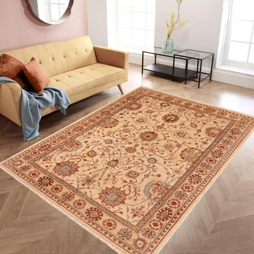 Boho Chic Ziegler Verdell Beige Gold Hand-Knotted Wool Rug - 6'0'' x 8'10''