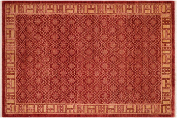 Oriental Ziegler Kattie Red Gold Hand-Knotted Wool Rug - 6'2'' x 8'11''