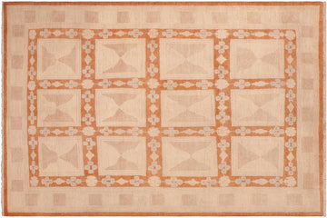 Oriental Ziegler Angle Orange Tan Hand-Knotted Wool Rug - 5'11'' x 8'8''