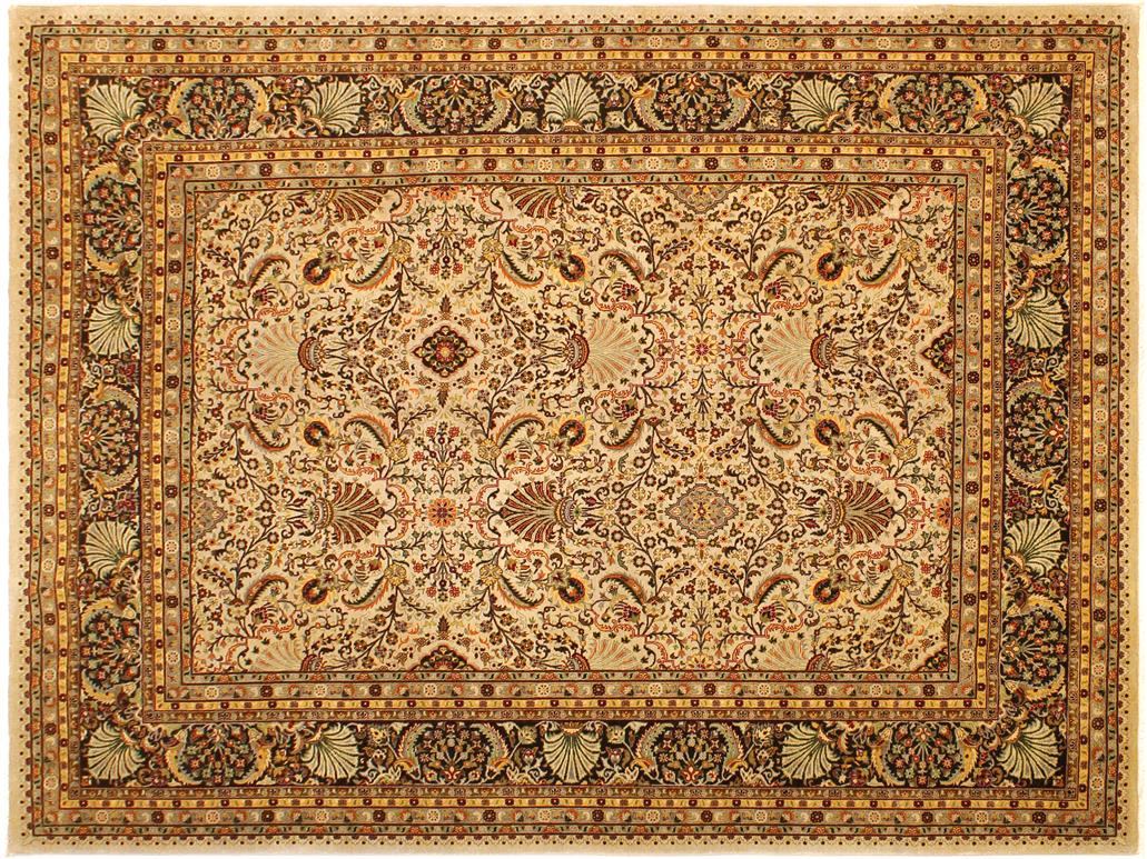 Turkish Knotted Istanbul Liliana Tan/Black Wool Rug - 9'1'' x 12'4''