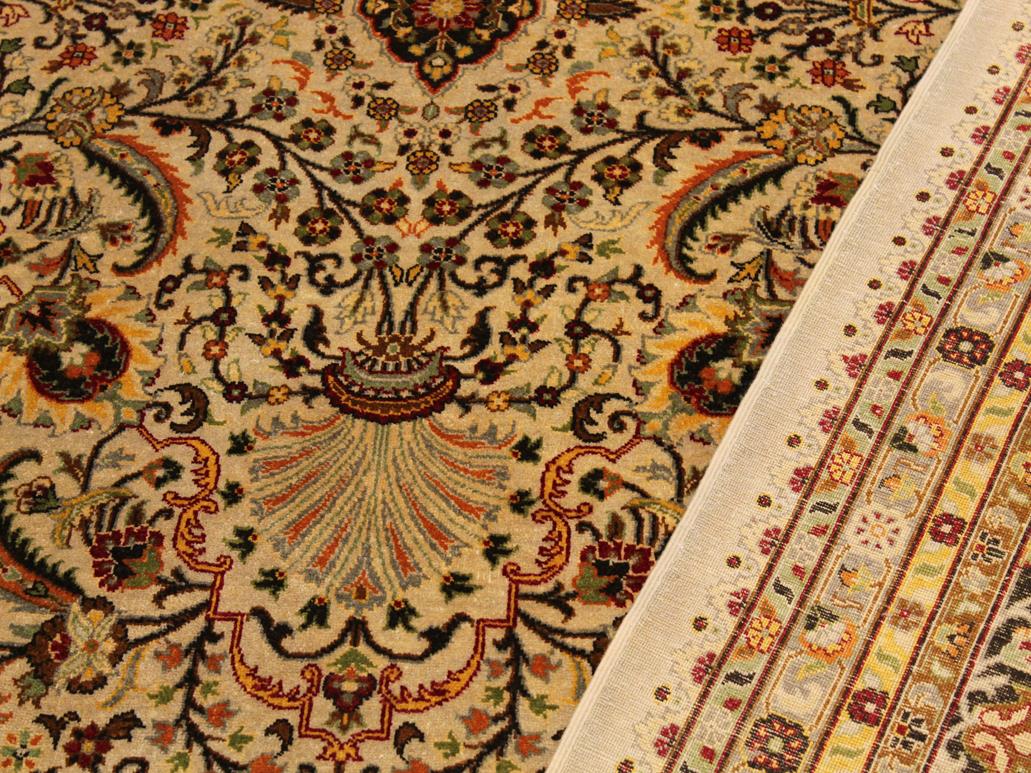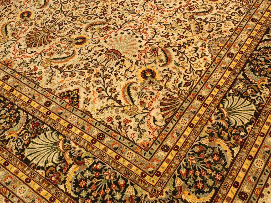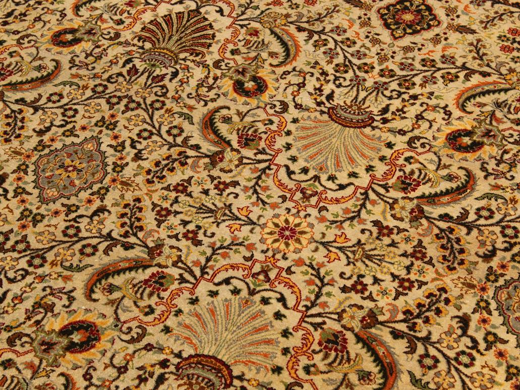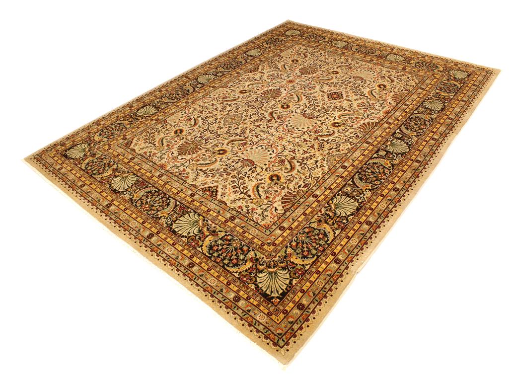 Designed with a mesmerizing intricate traditional motif this glorious hand knotted rug is a masterpiece that will fill any space with sophistication and grace. An exhilarating color pallet with an elaborate design, this masterpiece features luxurious hand spun wool with all vegetable dyes to add comfort and style to your decor. The design, color and beautiful chromatic composition with a sheen in traditional and transitional designs, exude beauty, elegance and quality make this rug a masterpiece of its own.
