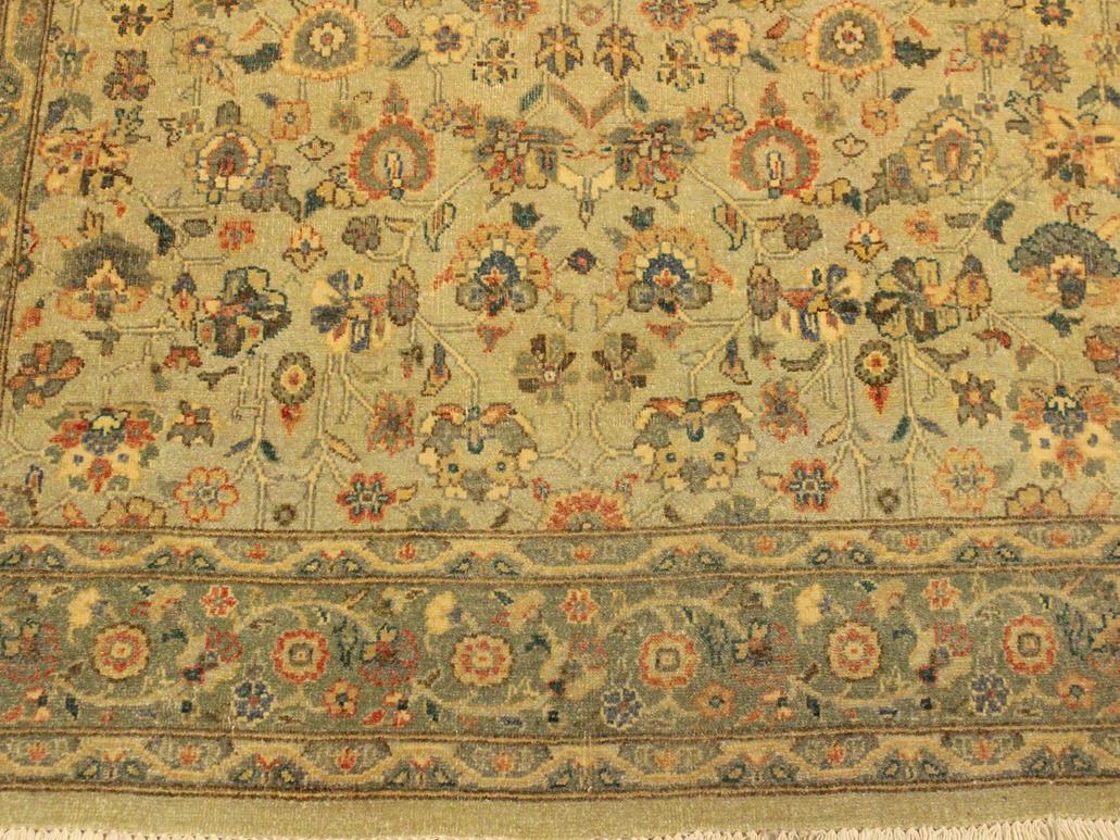 Turkish Knotted Istanbul Shonda Tan/Green Wool Rug - 4'3'' x 5'9''