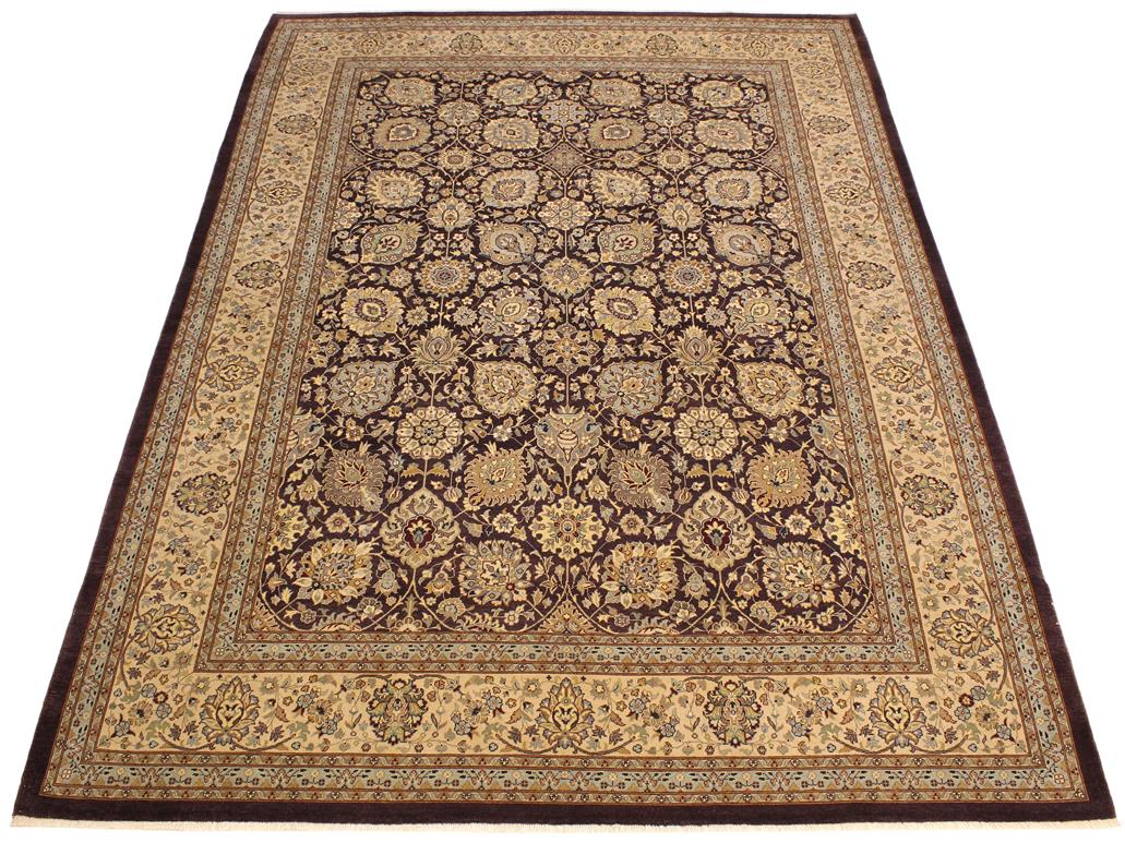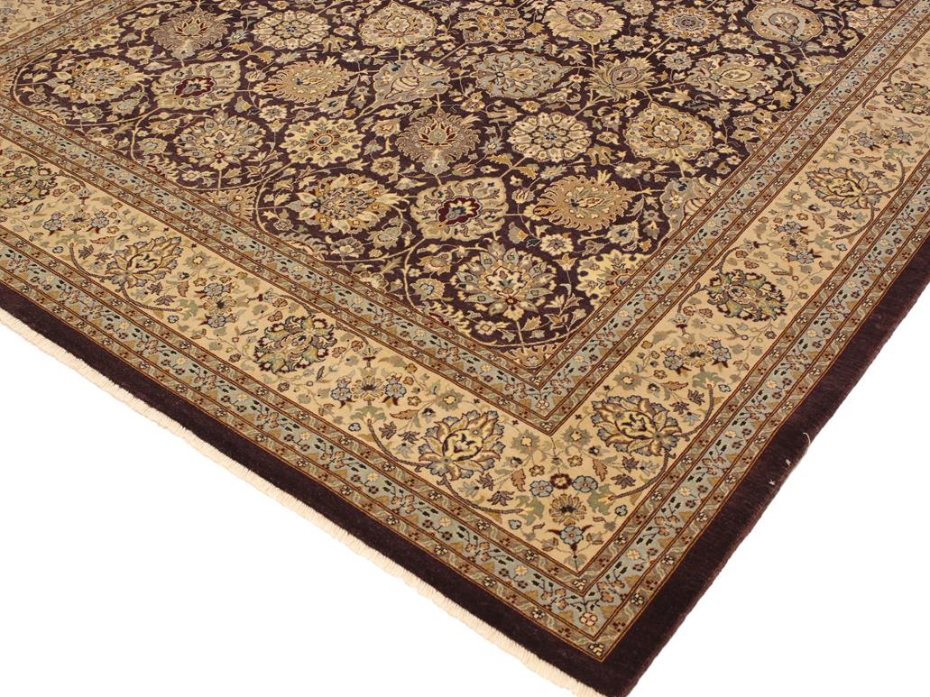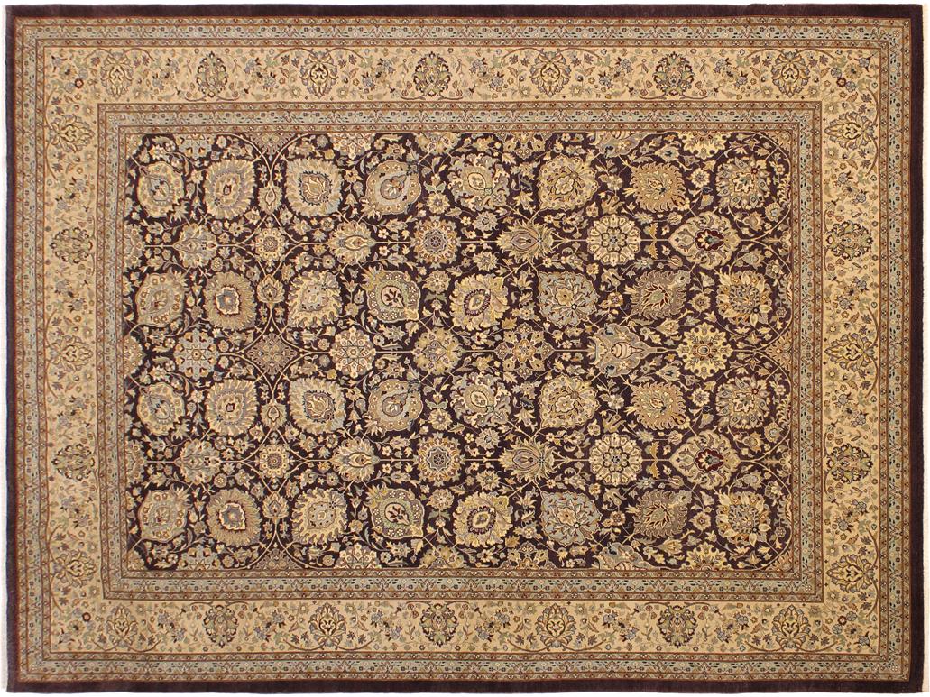 Turkish Knotted Istanbul Romana Aubergine/ Tan Wool Rug - 9'2'' x 12'3''