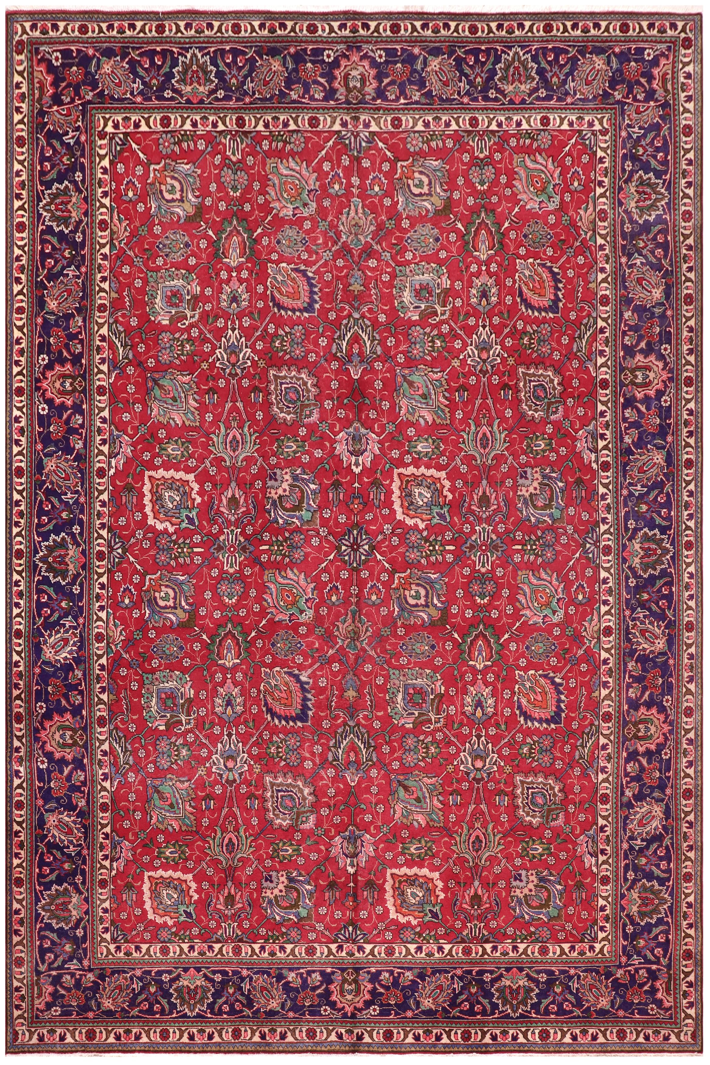 Vintage Antique Tabriz Knight Red/Blue Wool Rug - 9'8'' x 15'0''