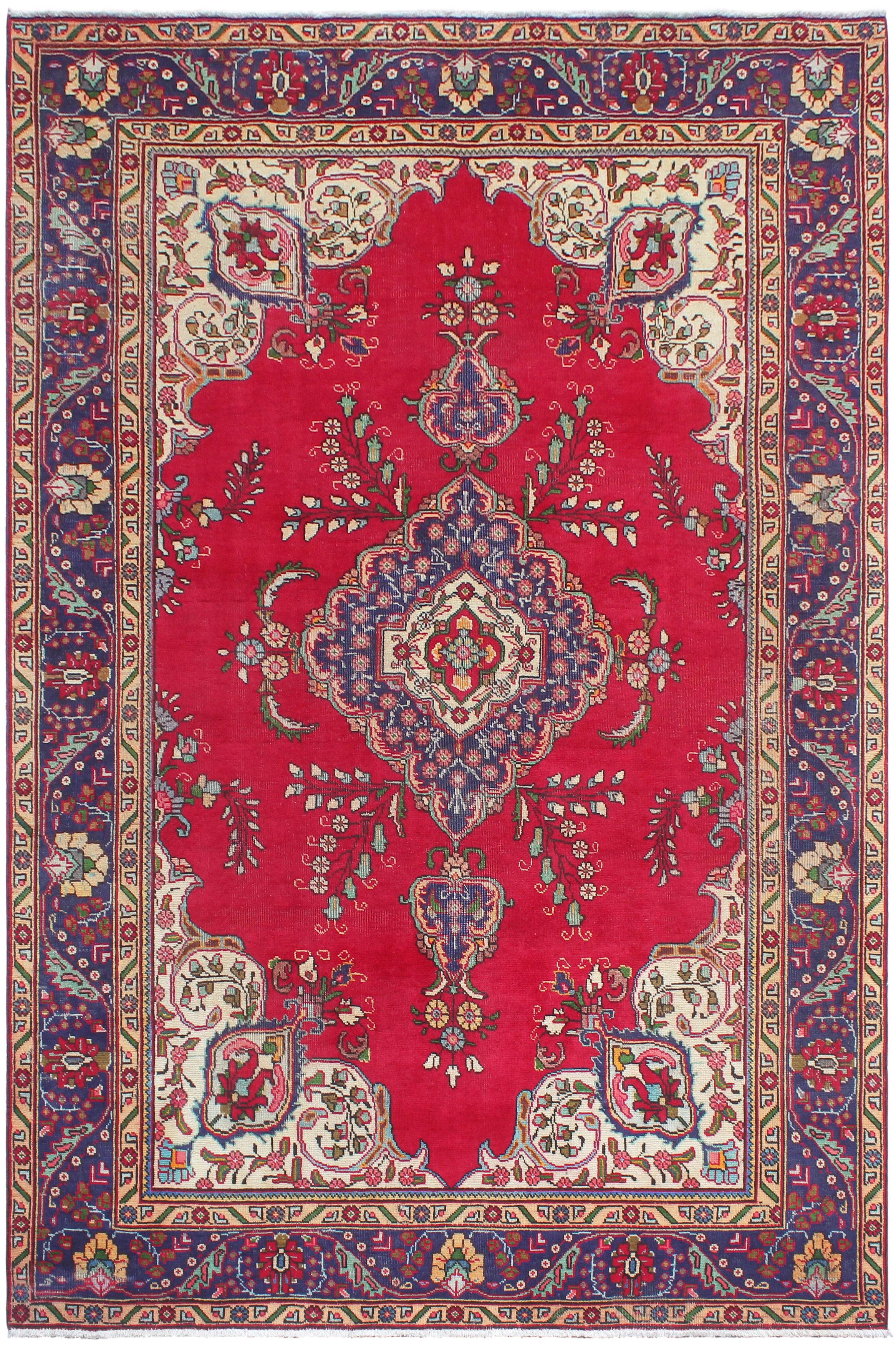 Distressed Antique Tabriz Palmer Red/Blue Wool Rug - 6'9'' x 9'5''