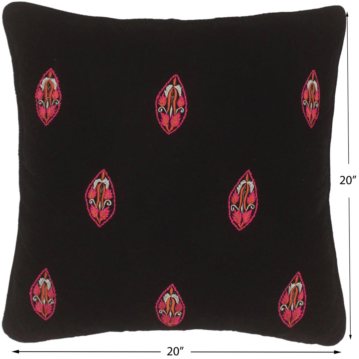 Enhance your home with this timeless, casual chic, handmade pillow crafted from luxurious Italian Velvet. Featuring a hand-embroidered pattern on elegant Italian Velvet with a stunning color combination and a unique, majestic, intricate design, it is a captivating addition to any décor. This beautiful, sophisticated pillow showcases vibrant colors and a distinctive design created by skilled artisans. Its intricate pattern and exquisite coloration make this handmade pillow a standout piece in any space.