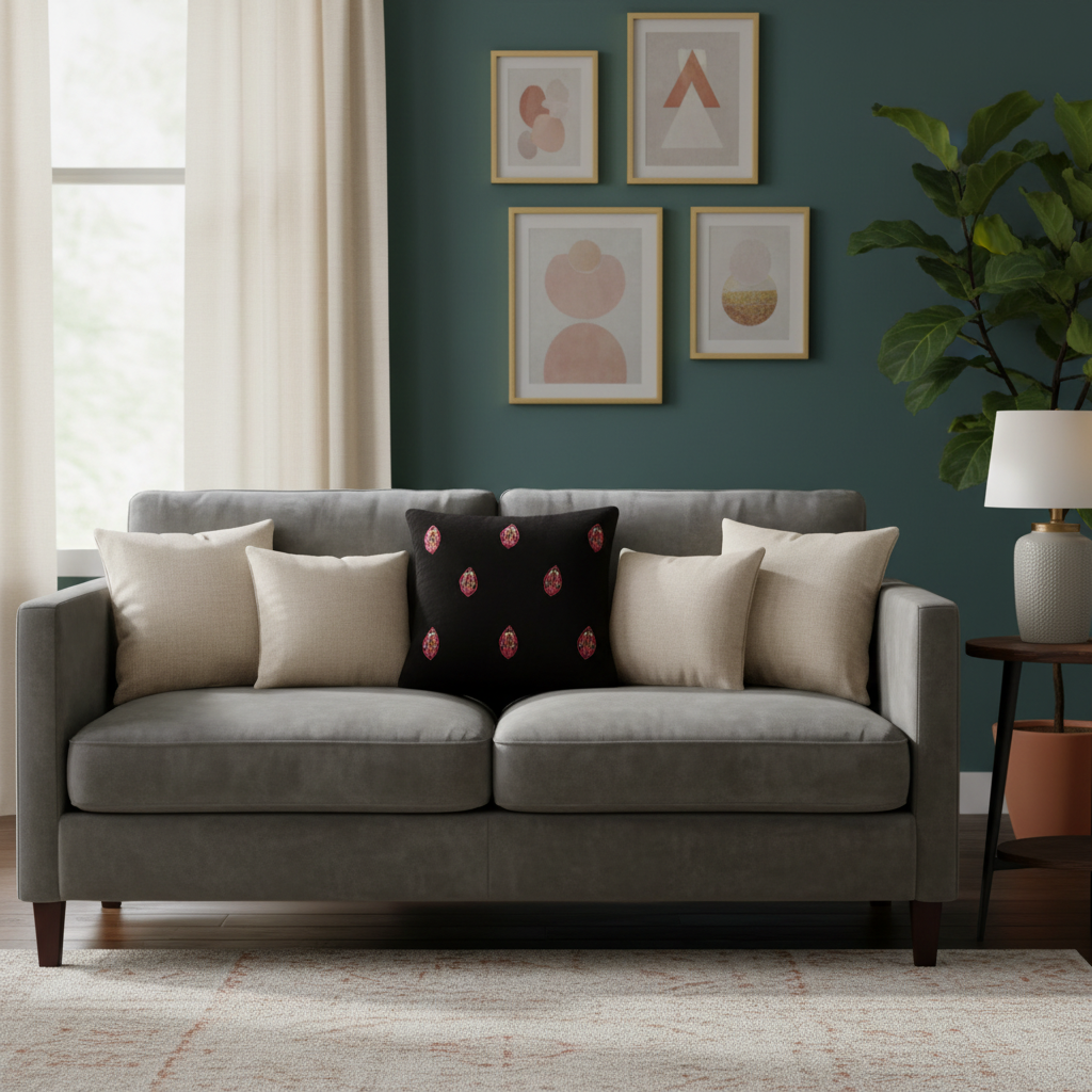 Boho Chic Flint Hand Embroidered Italian Velvet Pillow