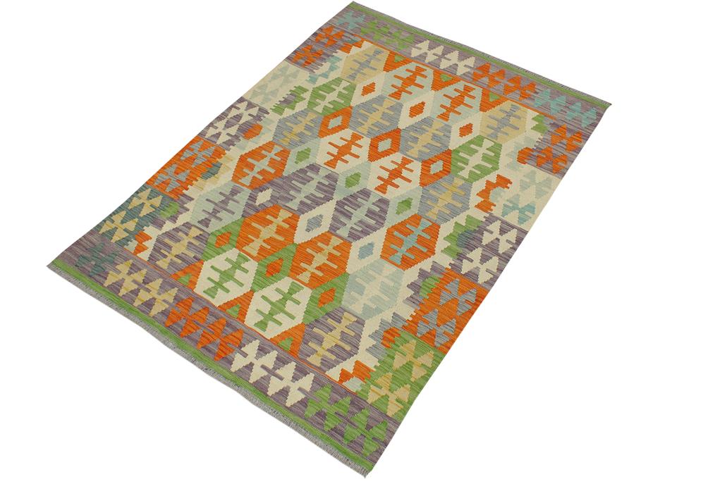 Contemporary Turkish Kilim Gill Hand-Woven Wool Rug - 4'4'' x 5'9''